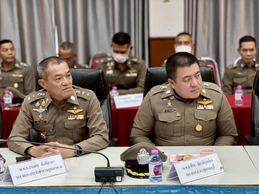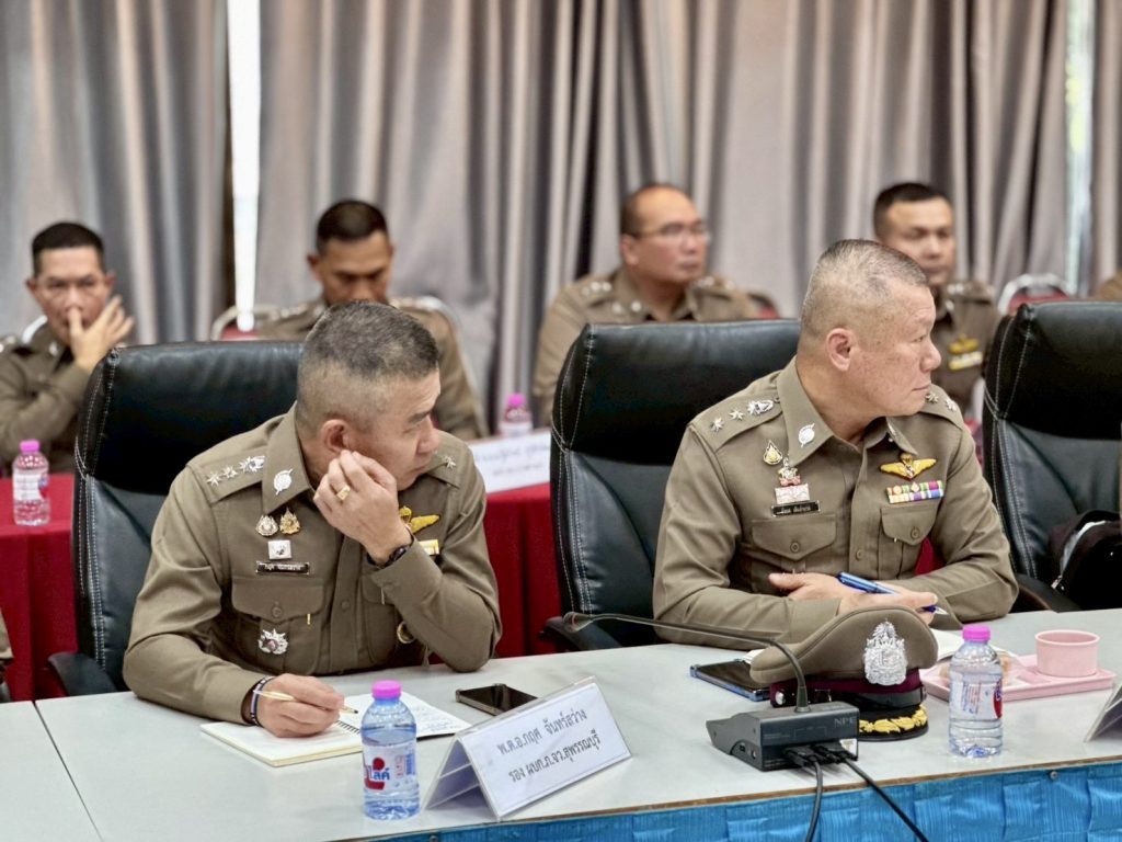วันที่ 28 ม.ค.69 เวลา 13.00 น. พล.ต.ต.วัชรินทร์ ประสพดี ผบก.ภ.จว.สุพรรณบุรี พร้อมด้วย รอง ผบก.ภ.จว.สุพรรณบุรี , หน.สภ.ฯ หรือผู้แทน ในสังกัดฯ , ผกก.(สอบสวน)ฯ , ผกก./ รอง ผกก./ สว. ฝอ.ภ.จว.สุพรรณบุรี และข้าราชการตำรวจ ฝอ.ภ.จว.สุพรรณบุรี ร่วมให้การต้อนรับ พล.ต.ต.วริศร์สิริภ์ ลีละสิริ รอง จตร. และ พล.ต.ต.คนิชย์ อ่วมสอาด ผบก.กต.7 พร้อมคณะ จเรตำรวจ กต.7 เดินทางมาตรวจราชการ ภ.จว.สุพรรณบุรี ประจำปีงบประมาณ พ.ศ.2569 และประชุมสรุปผลการตรวจราชการหน่วยงานในสังกัด ภ.จว.สุพรรณบุรี ณ ห้องประชุม 1 ชั้น 3 ภ.จว.สุพรรณบุรี