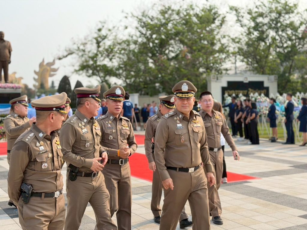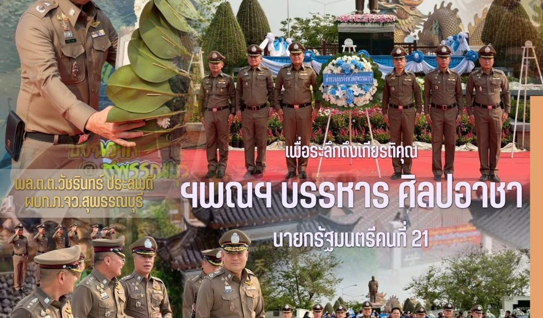 วันที่ 23 เม.ย.69 เวลา 09.00 น. พล.ต.ต.วัชรินทร์ ประสพดี ผบก.ภ.จว.สุพรรณบุรี พร้อมด้วย รอง ผบก.ภ.จว.สุพรรณบุรี และ ผกก.สภ.เมืองสุพรรณบุรี ร่วมพิธีวางพวงดอกไม้ 10 ปี การถึงอนิจกรรม เพื่อระลึกถึงเกียรติคุณ ฯพณฯ บรรหาร ศิลปอาชา นายกรัฐมนตรีคนที่ 21 โดยมี นายวราวุธ ศิลปอาชา รัฐมนตรีว่าการกระทรวงอุตสาหกรรม เป็นประธาน พร้อมด้วย นายณัฐพงษ์ สงวนจิตร ผู้ว่าราชการจังหวัดสุพรรณบุรี และแขกผู้มีเกียรติเข้าร่วม ณ อนุสาวรีย์ ฯพณฯ บรรหาร ศิลปอาชา อุทยานสัจจะและกตัญญู ศาลเจ้าพ่อหลักเมือง อ.เมือง จ.สุพรรณบุรี