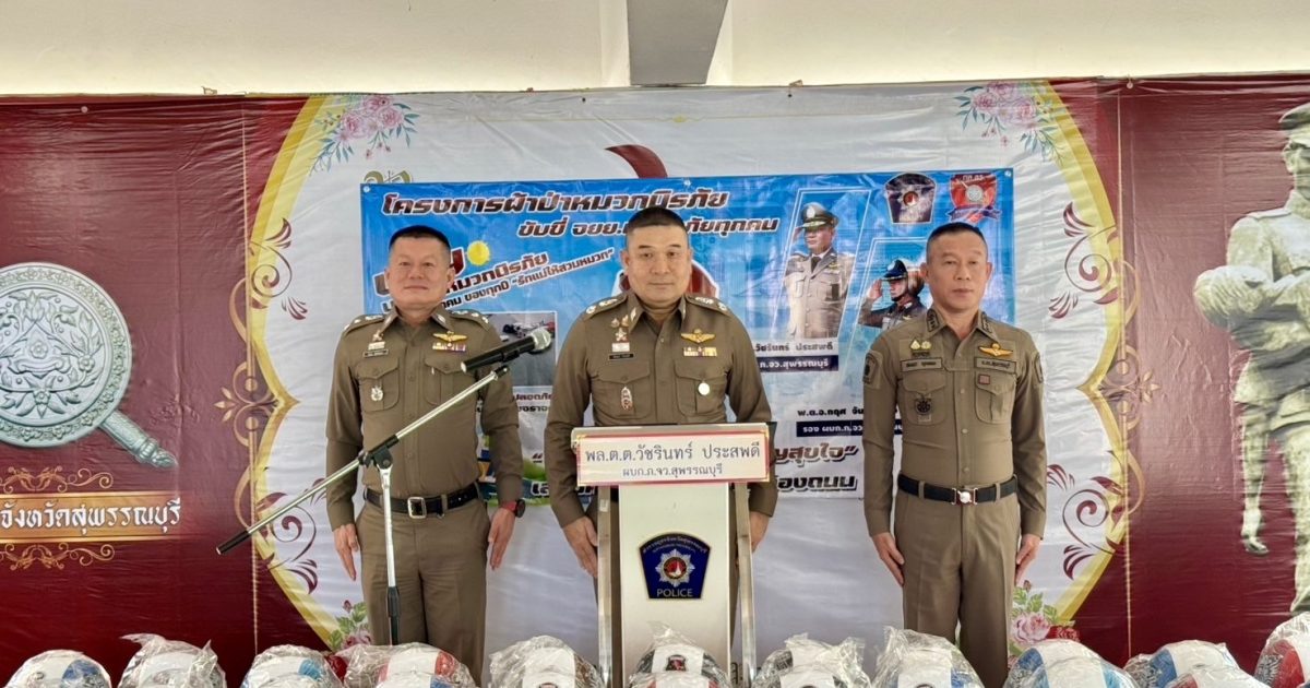 พิธีมอบหมวกนิรภัย โครงการ “ผ้าป่าหมวกนิรภัย ตำรวจภูธรจังหวัดสุพรรณบุรี” ให้แก่ข้าราชการตำรวจ และพนักงานเจ้าหน้าที่ ภ.จว.สุพรรณบุรี