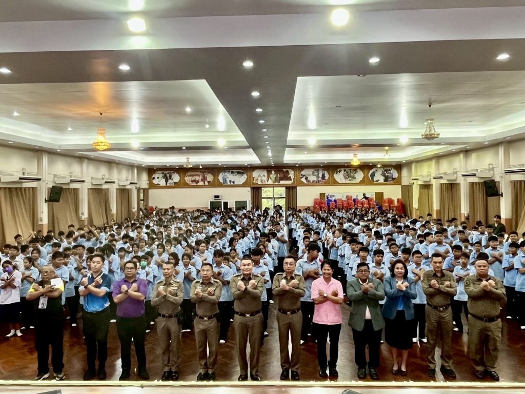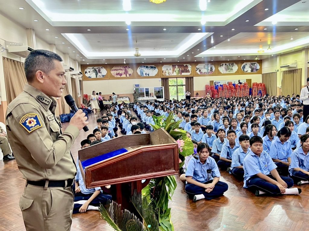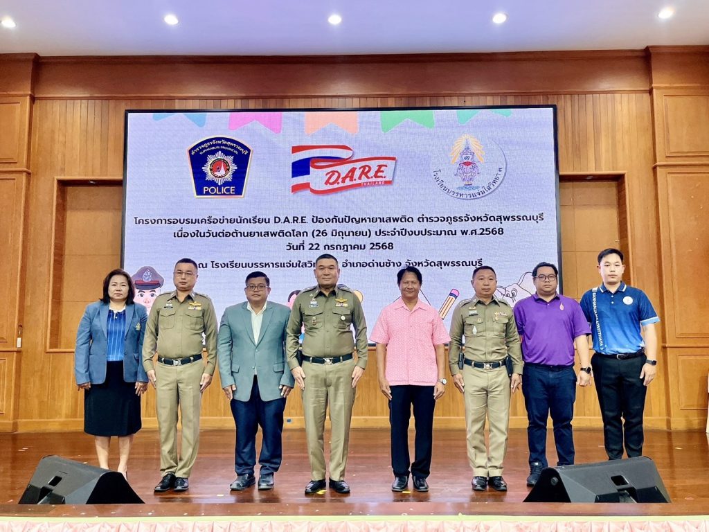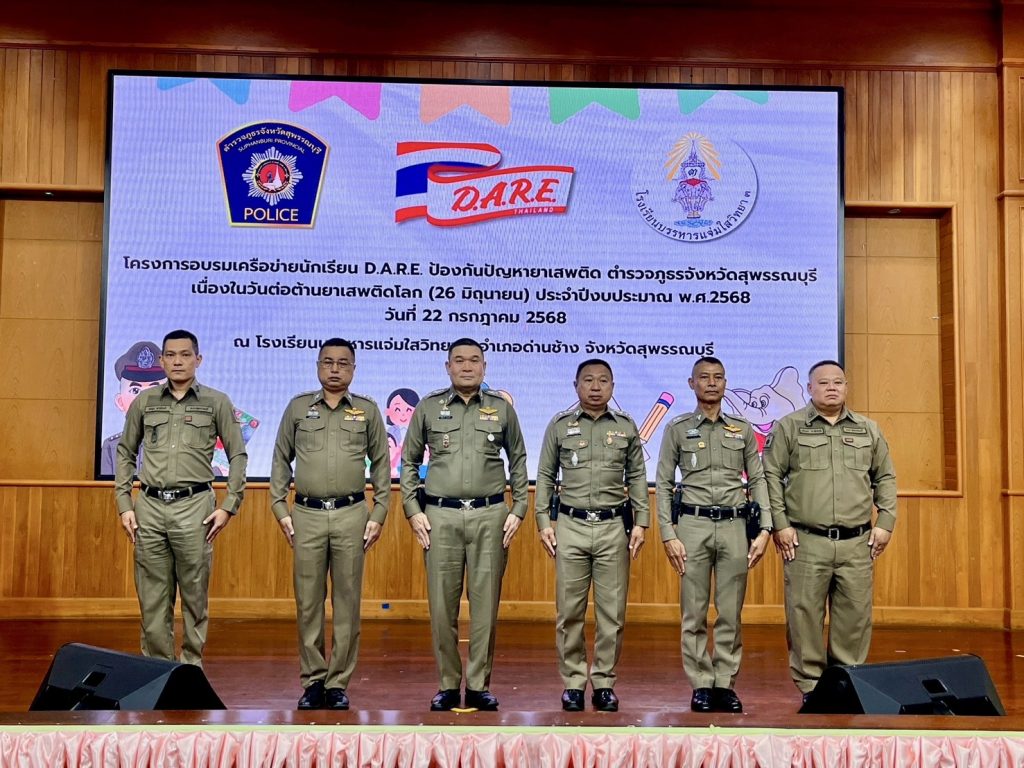 วันที่ (22 ก.ค.68) เวลา 09.00 น. พล.ต.ต.วัชรินทร์ ประสพดี ผบก.ภ.จว.สุพรรณบุรี เป็นประธาน พิธีเปิดโครงการอบรมเครือข่ายนักเรียน D.A.R.E. ป้องกันปัญหายาเสพติด ตำรวจภูธรจังหวัดสุพรรณบุรี เนื่องในวันต่อต้านยาเสพติดโลก (26 มิถุนายน) ประจำปี พ.ศ.2568 พร้อมด้วย พ.ต.อ.นนท์ ภักดีพันธ์ รอง ผบก.ภ.จว.สุพรรณบุรี , พ.ต.อ.ทัตเทพ เลิศลักษณ์มีพันธ์ ผกก.สภ.ด่านช้าง และ ดร.ธวัช กรุดมณี ผู้อำนวยการ รร.บรรหารแจ่มใสวิทยา 3 พร้อมคณะครูอาจารย์ เข้าร่วมพิธี โดยมีผู้เข้ารับการอบรมเป็นนักเรียนชั้นมัธยมศึกษาปีที่ 1 จำนวน 600 คน ณ หอประชุม โรงเรียนบรรหารแจ่มใสวิทยา 3 อ.ด่านช้าง จ.สุพรรณบุรี