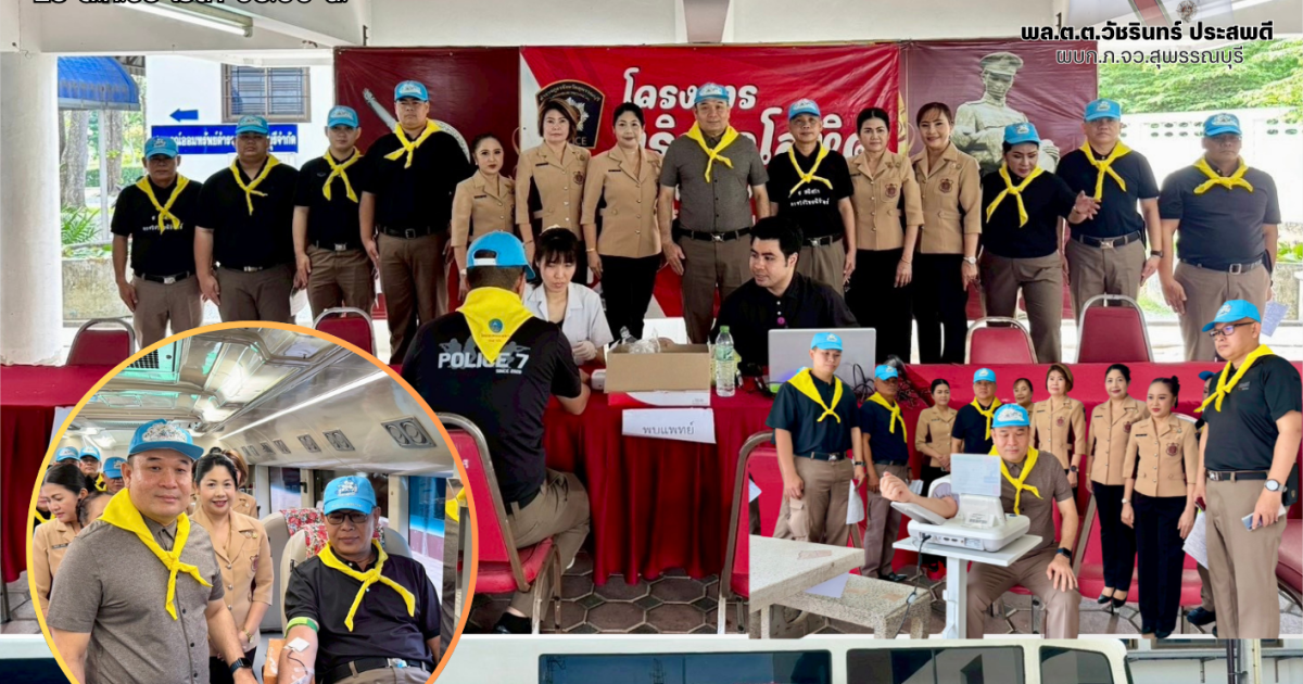 วันที่ 28 ต.ค.68 เวลา 08.00 น. พล.ต.ต.วัชรินทร์ ประสพดี ผบก.ภ.จว.สุพรรณบุรี พร้อมด้วย พ.ต.อ.สมพร พุกหอม , พ.ต.อ.ศักดิ์ชัย อินทรปรีชา , พ.ต.อ.กฤศ จันทร์สว่าง รอง ผบก.ภ.จว.สุพรรณบุรี , พ.ต.อ.ธารา ศรีพรหมคำ ผกก.สภ.สระยายโสม , พ.ต.อ.ยุทธนา สันติปรีชาวัฒน์ ผกก.ฝอ.ภ.จว.สุพรรณบุรี และข้าราชการตำรวจในสังกัด ภ.จว.สุพรรณบุรี, แม่บ้านตำรวจ ภ.จว.สุพรรณบุรี และประชาชนจิตอาสา รวม 115 นาย เข้าร่วมกิจกรรมจิตอาสาบริจาคโลหิตเพื่อถวายเป็นพระราชกุศล เนื่องในวันคล้ายวันสวรรคตของพระบาทสมเด็จพระบรมชนกาธิเบศร มหาภูมิพลอดุลยเดชมหาราช บรมนาถบพิตร และวันคล้ายวันสวรรคตของพระบาทสมเด็จพระจุลจอมเกล้าเจ้าอยู่หัว โดยมีหน่วยรับบริจาคโลหิตโรงพยาบาลเจ้าพระยายมราช ได้รับการบริจาคโลหิตรวม 48 ถุง จำนวน 21,600 ซีซี ณ อาคารที่ทำการ ตำรวจภูธรจังหวัดสุพรรณบุรี อ.เมือง จ.สุพรรณบุรี
