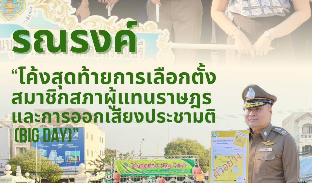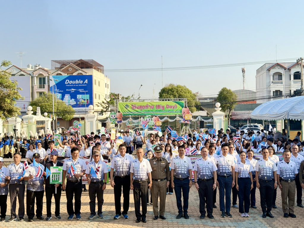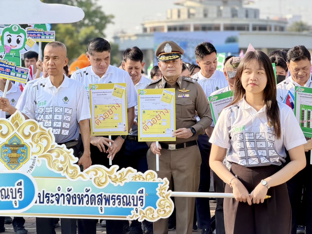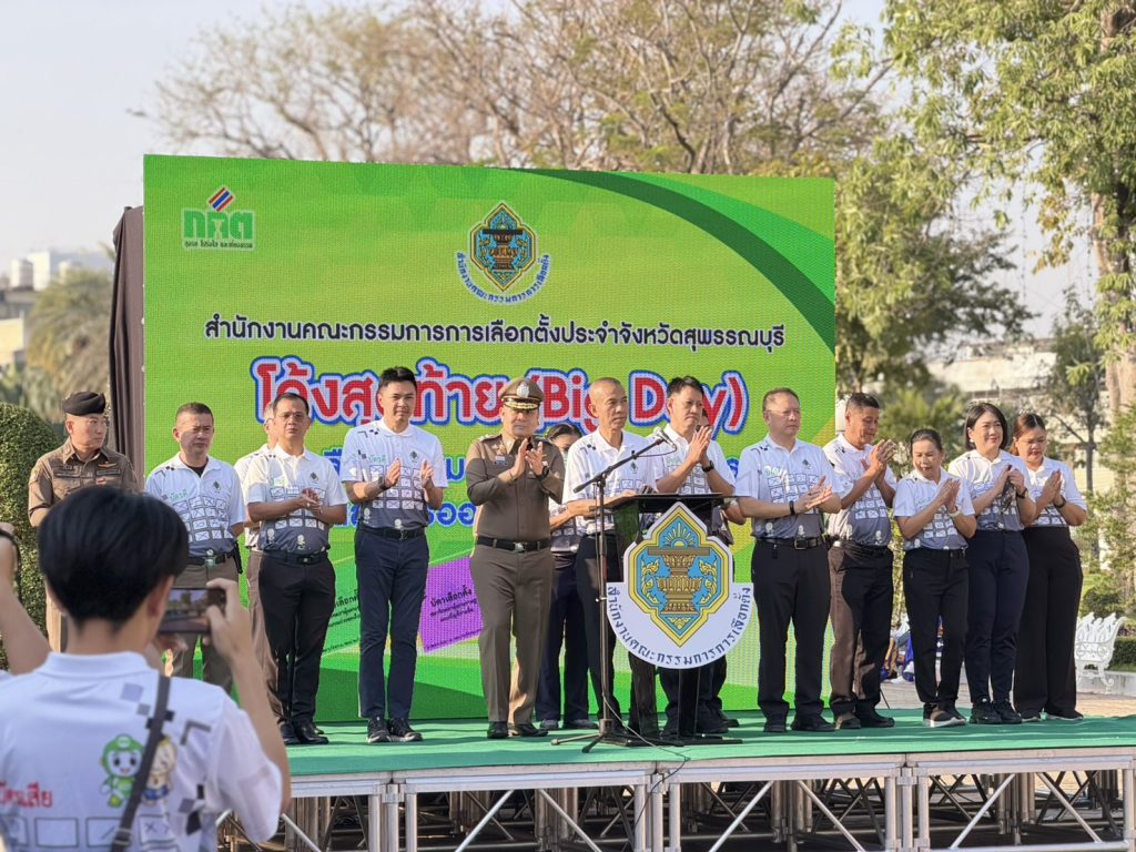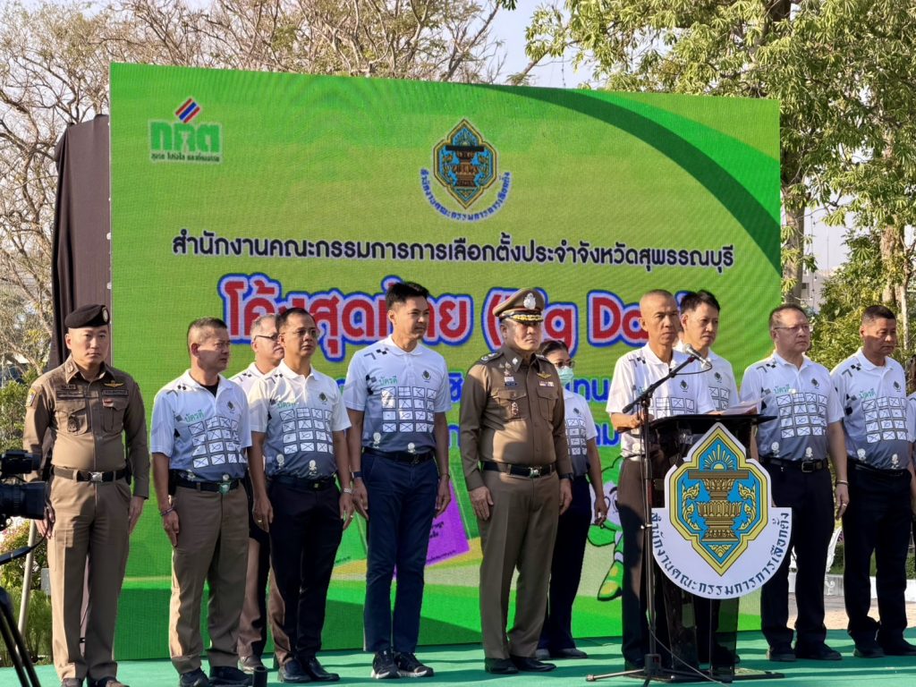 วันที่ 5 ก.พ.69 เวลา 08.00 น. พล.ต.ต.วัชรินทร์ ประสพดี ผบก.ภ.จว.สุพรรณบุรี พร้อมด้วย พ.ต.อ.กฤศ จันทร์สว่าง รอง ผบก.ภ.จว.สุพรรณบุรี และ พ.ต.อ.บุญย์พัชร์ ปิยะบุญสิทธิ ผกก.สภ.เมืองสุพรรณบุรี เข้าร่วมกิจกรรมรณรงค์ “โค้งสุดท้ายการเลือกตั้งสมาชิกสภาผู้แทนราษฎร และการออกเสียงประชามติ (Big Day)” โดยมี นายณัฐพงษ์ สงวนจิตร ผู้ว่าราชการจังหวัดสุพรรณบุรี เป็นประธาน ณ สวนเฉลิมภัทรราชินี (หอคอย บรรหาร-แจ่มใส) อ.เมือง จ.สุพรรณบุรี