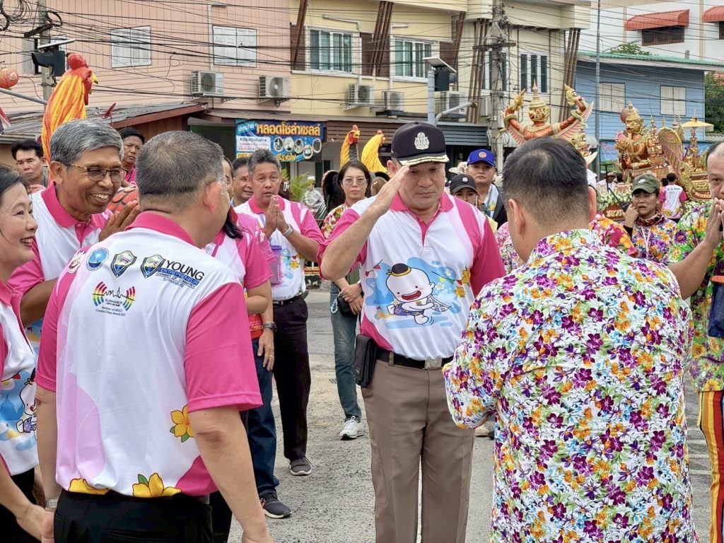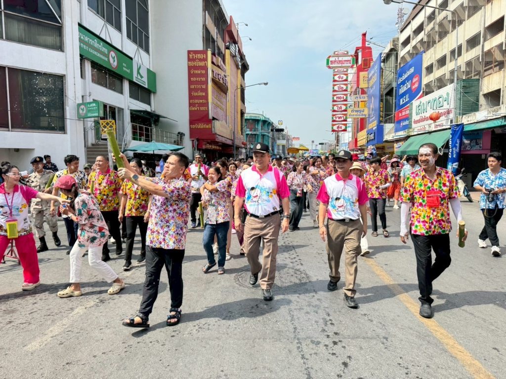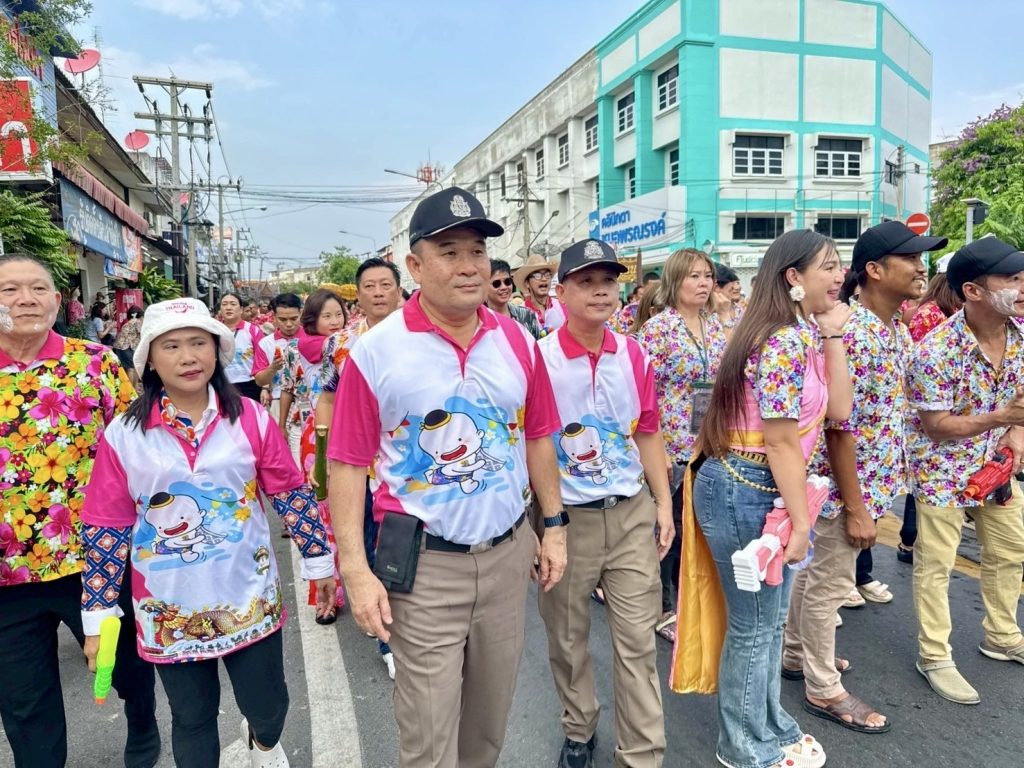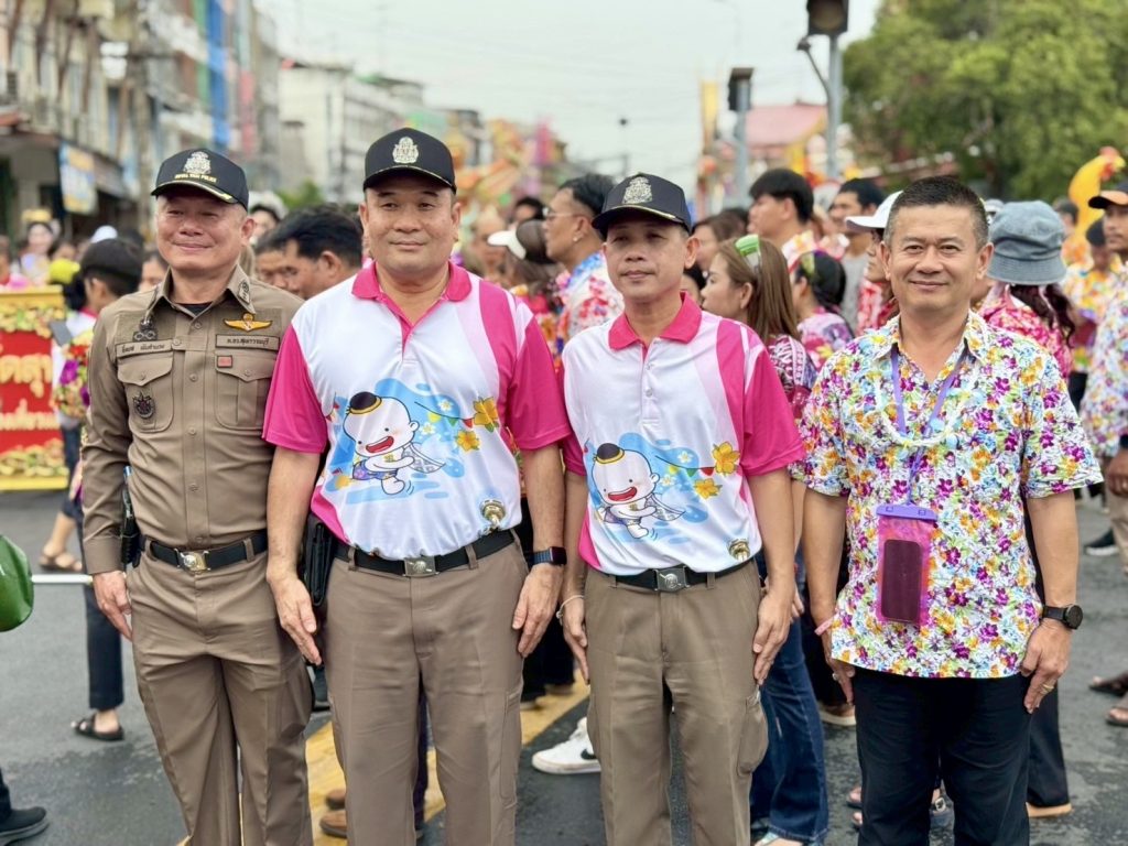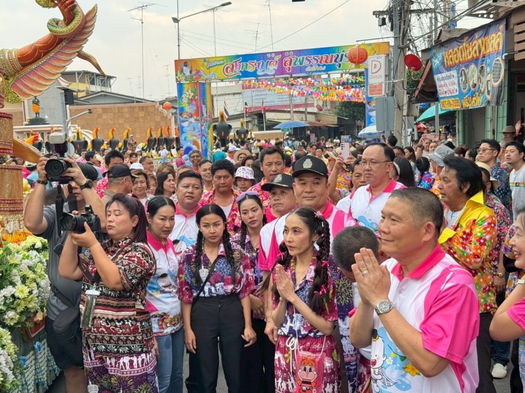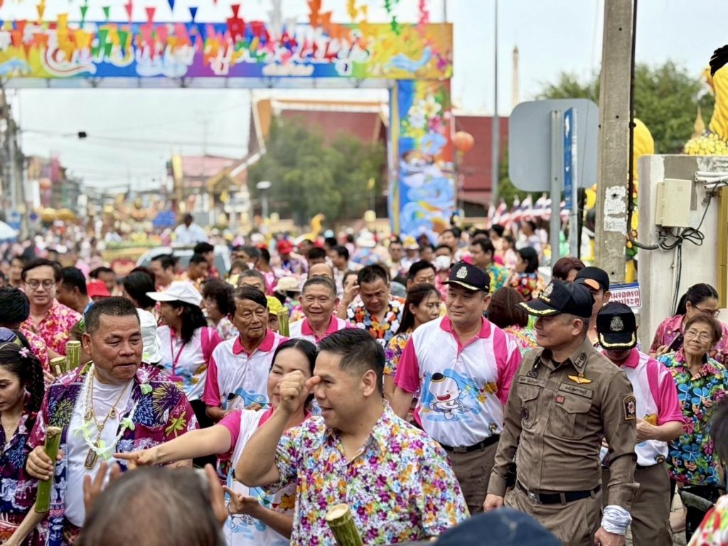วันที่ (13 เม.ย.68) เวลา 14.00 - 19.00 น. พล.ต.ต.วัชรินทร์ ประสพดี ผบก.ภ.จว.สุพรรณบุรี พร้อมด้วย พ.ต.อ.ศักดิ์ชัย อินทรปรีชา , พ.ต.อ.ยิ่งยส เขินอำนวย , พ.ต.อ.กฤศ จันทร์สว่าง รอง ผบก.ภ.จว.สุพรรณบุรี และ พ.ต.อ.วันชัย ขาวรัมย์ ผกก.สภ.เมืองสุพรรณบุรี ร่วมขบวนแห่งาน “เย็นทั่วหล้า มหาสงกรานต์ สุพรรณบุรี“ ประจำปี 2568 โดยมี นายวราวุธ ศิลปอาชา รัฐมนตรีว่าการกระทรวงการพัฒนาสังคมและความมั่นคงของมนุษย์ เป็นประธาน พร้อมด้วย นายพิริยะ ฉันทดิลก ผู้ว่าราชการจังหวัดสุพรรณบุรี หัวหน้าส่วนราชการจังหวัดสุพรรณบุรี และแขกผู้มีเกียรติเข้าร่วม บริเวณถนนพระพันวษา ต่อเนื่องเวทีกลาง บริเวณถนนโครงการจัดรูปที่ดินเพื่อพัฒนาพื้นที่บริเวณเทศบาลตำบลท่าระหัด อ.เมือง จ.สุพรรณบุรี