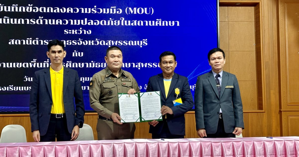 ร่วมทำบันทึกข้อตกลงความร่วมมือ (MOU) การสวมหมวกนิรภัย 100 เปอร์เซ็นต์ กับ สำนักงานเขตพื้นที่การศึกษามัธยมศึกษาสุพรรณบุรี