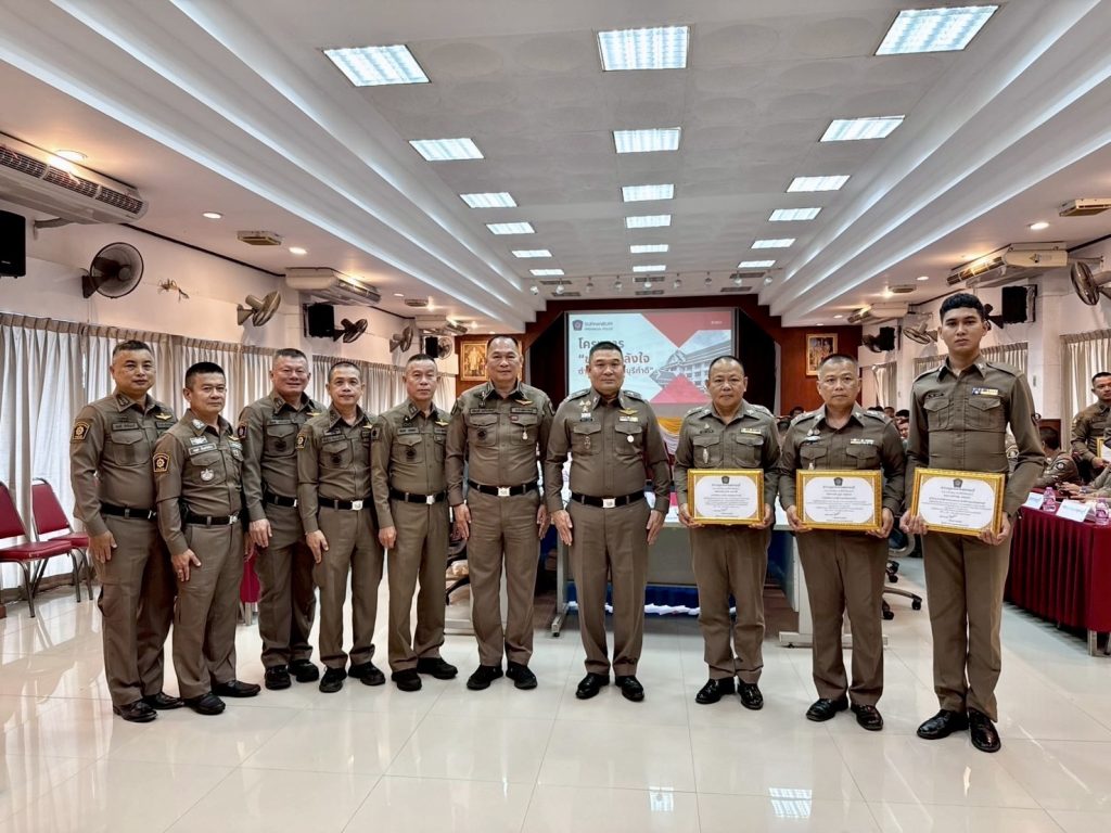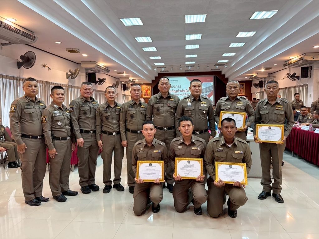 วันที่ (9 เม.ย.68) เวลา 09.30 น. พล.ต.ต.วัชรินทร์ ประสพดี ผบก.ภ.จว.สุพรรณบุรี เป็นประธานการประชุม พร้อมด้วย รอง ผบก.ภ.จว.สุพรรณบุรี , หน.สภ.ฯ ในสังกัด , ผกก.สืบสวนฯ , ผกก.(สอบสวน)ฯ , ผกก./รอง ผกก./สว. ฝอ.ภ.จว.สุพรรณบุรี และหน่วยเกี่ยวข้อง ร่วมประชุมบริหารราชการ ภ.จว.สุพรรณบุรี ครั้งที่ 4/2568 ประจำเดือน เม.ย.68 เพื่อเร่งรัดและติดตามผลการปฏิบัติงาน และกำชับข้าราชการตำรวจในสังกัดปฏิบัติหน้าที่อย่างเคร่งครัด โดยวาระก่อนการประชุม ได้มีการมอบเกียรติบัตรและเงินรางวัลให้แก่ข้าราชการตำรวจตามโครงการ “ขวัญกำลังใจ ตำรวจสุพรรณบุรีทำดี” ที่มีผลการปฏิบัติในรอบเดือน มี.ค.68 ซึ่งผ่านการพิจารณาจากคณะกรรมการฯ มีรายละเอียด ดังนี้ 1.จับกุมอาวุธปืน (ก.พ.68) 33 กระบอก เงินรางวัล 30,900 บาท (มี.ค.68) 53 กระบอก เงินรางวัล 50,000 บาท 2.จับกุมคดีอุกฉกรรจ์สะเทือนขวัญ/คดีน่าสนใจ 3 รางวัล เป็นเงิน 15,000 บาท 3.การสร้างภาพลักษณ์ที่ดีต่อองค์กร 2 รางวัล เป็นเงิน 2,000 บาท 4.การปฏิบัติหน้าที่ด้านอำนวยการและสนับสนุน 6 รางวัล เป็นเงิน 6,000 บาท 5.การปฏิบัติหน้าที่ด้านงานสอบสวน 6 รางวัล เป็นเงิน 6,000 บาท 6.การปฏิบัติหน้าที่ด้านงานจราจร 2 รางวัล เป็นเงิน 2,000 บาท 7.การปฏิบัติหน้าที่ด้านงานป้องกันปราบปราม 4 รางวัล เป็นเงิน 4,000 บาท 8.การปฏิบัติหน้าที่ด้านงานสืบสวน 4 รางวัล เป็นเงิน 4,000 บาท รวมเป็นเงินรางวัล จำนวน 119,900 บาท และมอบทุนส่งเสริมการศึกษาบุตรสมาชิกสหกรณ์ออมทรัพย์ตำรวจสุพรรณบุรี ประจำปี 2567 จำนวน 263 ทุน เป็นเงิน 600,000 บาท ณ ห้องประชุม 1 ชั้น 3 ภ.จว.สุพรรณบุรี