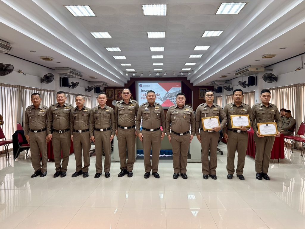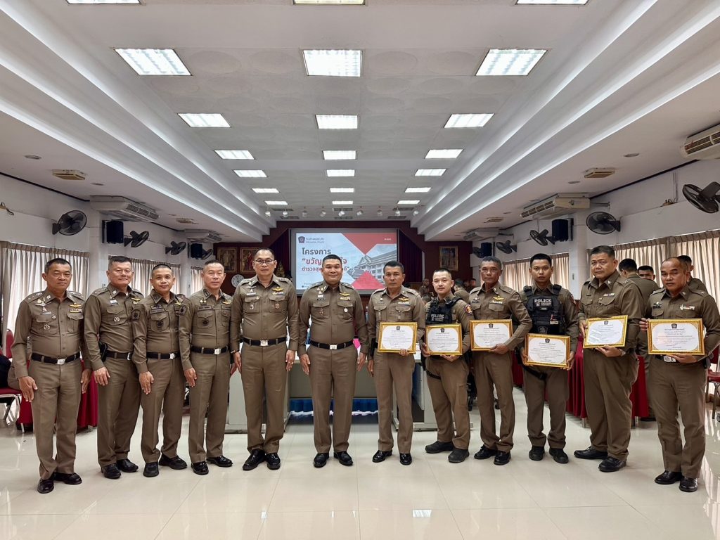 วันที่ 10 มิ.ย.67 เวลา 13.30 น. พล.ต.ต.วัชรินทร์ ประสพดี ผบก.ภ.จว.สุพรรณบุรี เป็นประธานการประชุม พร้อมด้วย รอง ผบก.ภ.จว.สุพรรณบุรี , หน.สภ.ฯ ในสังกัด , ผกก.สืบสวนฯ , ผกก.(สอบสวน)ฯ , ผกก./รอง ผกก./สว. ฝอ.ภ.จว.สุพรรณบุรี และหน่วยเกี่ยวข้อง ร่วมประชุมบริหารราชการ ภ.จว.สุพรรณบุรี ครั้งที่ 9/2567 ประจำเดือน มิ.ย.67 เพื่อเร่งรัดและติดตามผลการปฏิบัติงาน และกำชับข้าราชการตำรวจในสังกัดปฏิบัติหน้าที่อย่างเคร่งครัด โดยวาระก่อนการประชุม นายสมพงษ์ สุนทรธรรม นายกเทศมนตรีตำบลโคกคราม / ประธาน กต.ตร.สภ.บางปลาม้า ได้มอบเงินสนับสนุนโครงการ “ขวัญกำลังใจ ตำรวจสุพรรณบุรีทำดี” เป็นเงิน 40,000 บาท รวมเป็นยอดเงินทั้งหมดของโครงการฯ จำนวน 765,000 บาท และได้มีการมอบเกียรติบัตร,เงินรางวัลให้แก่ข้าราชการตำรวจตามโครงการ “ขวัญกำลังใจ ตำรวจสุพรรณบุรีทำดี” ที่มีผลการปฏิบัติในรอบเดือน พ.ค.67 ซึ่งผ่านการพิจารณาจากคณะกรรมการฯ มีรายละเอียด ดังนี้ 1.จับกุมอาวุธปืน 28 กระบอก เงินรางวัล 24,100 บาท 2.จับกุมคดีอุกฉกรรจ์สะเทือนขวัญ 4 รางวัล เป็นเงิน 18,000 บาท 3.การสร้างภาพลักษณ์ที่ดีต่อองค์กร 4 รางวัล เป็นเงิน 4,000 บาท 4.การปฏิบัติหน้าที่ด้านสนับสนุน 4 รางวัล เป็นเงิน 4,000 บาท 5.การปฏิบัติหน้าที่ด้านงานสอบสวน 4 รางวัล เป็นเงิน 4,000 บาท 6.การปฏิบัติหน้าที่ด้านงานจราจร 2 รางวัล เป็นเงิน 2,000 บาท 7.การปฏิบัติหน้าที่ด้านงานป้องกันปราบปราม 2 รางวัล เป็นเงิน 2,000 บาท 8.การปฏิบัติหน้าที่ด้านงานสืบสวน 3 รางวัล เป็นเงิน 3,000 บาท รวมเป็นเงินรางวัล จำนวน 61,100 บาท ณ ห้องประชุม 1 ชั้น 3 ภ.จว.สุพรรณบุรี