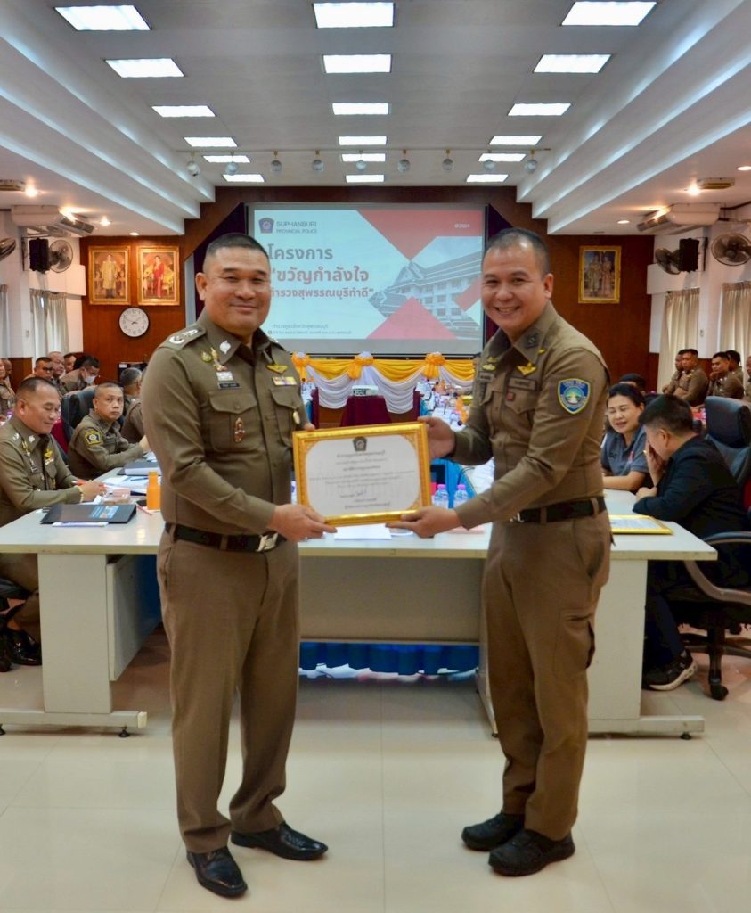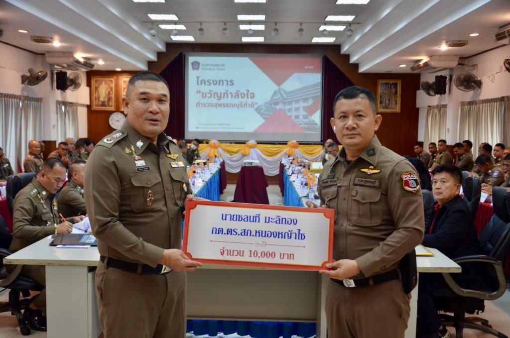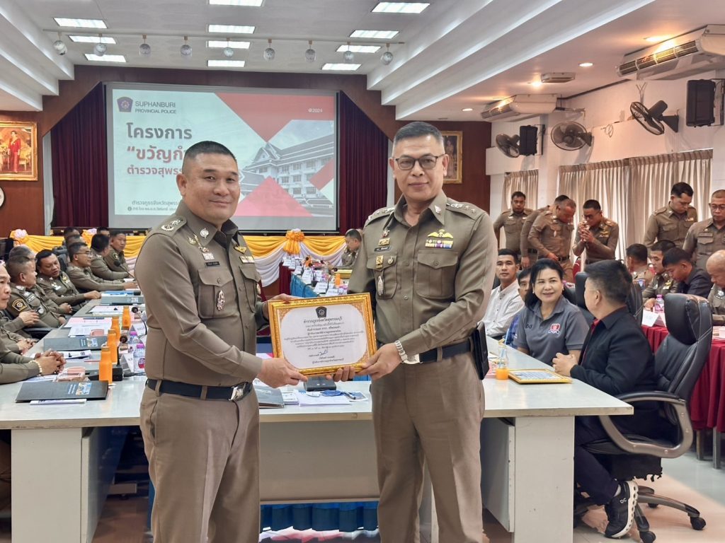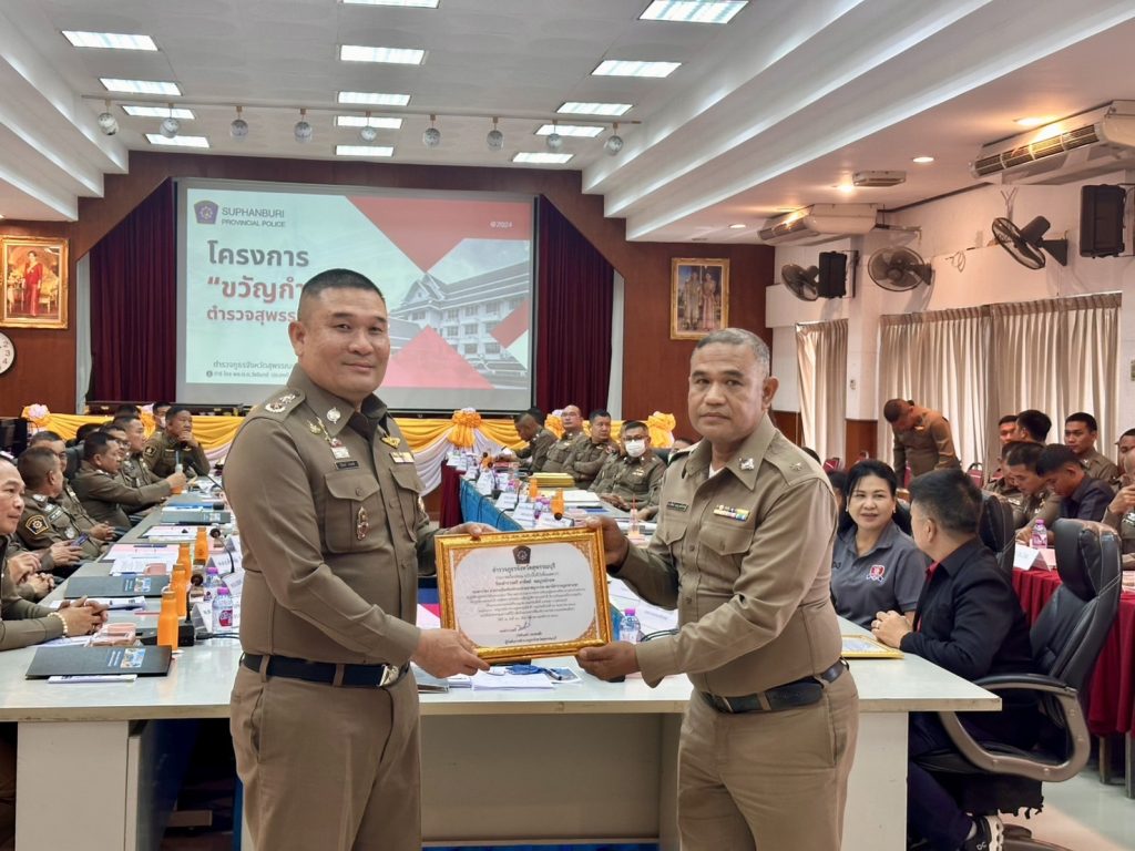 วันที่ (10 มิ.ย.68) เวลา 13.30 น. พล.ต.ต.วัชรินทร์ ประสพดี ผบก.ภ.จว.สุพรรณบุรี เป็นประธานการประชุม พร้อมด้วย รอง ผบก.ภ.จว.สุพรรณบุรี , หน.สภ.ฯ ในสังกัด , ผกก.สืบสวนฯ , ผกก.(สอบสวน)ฯ , ผกก./รอง ผกก./สว. ฝอ.ภ.จว.สุพรรณบุรี และหน่วยเกี่ยวข้อง ร่วมประชุมบริหารราชการ ภ.จว.สุพรรณบุรี ครั้งที่ 6/2568 ประจำเดือน มิ.ย.68 เพื่อเร่งรัดและติดตามผลการปฏิบัติงาน และกำชับข้าราชการตำรวจในสังกัดปฏิบัติหน้าที่อย่างเคร่งครัด โดยวาระก่อนการประชุม ได้มีการรับมอบเงินสนับสนุนสมทบทุนโครงการ “ขวัญกำลังใจ ตำรวจสุพรรณบุรีทำดี” จากผู้มีรายนาม ดังนี้ 1. นายเวทวัฒน์ เวทสรณสุธี พร้อมคณะ กต.ตร.สภ.ศรีประจันต์ จำนวน 30,000 บาท 2. น.ส.ณาตยา กลิ่นจุ่น พร้อมคณะ กต.ตร.สภ.สระแก้ว จำนวน 20,000 บาท 3. นายชยพล ปั้นปล้อง กต.ตร.สภ.หนองหญ้าไซ จำนวน 10,000 บาท 4. นายวาทิตย์ ใจธรรม บริษัท เจ อาร์ แพค จำกัด จำนวน 10,000 บาท 5. ผู้แทน คณะ กต.ตร.สภ.บางปลาม้า จำนวน 40,000 บาท 6. ผู้แทน บริษัทโรงโม่หินด่านช้าง จำนวน 40,000 บาท 7. ผู้แทน คณะ กต.ตร.สภ.เดิมบางนางบวช จำนวน 30,000 บาท 8. ผู้แทน คณะ กต.ตร.สภ.หนองหญ้าไซ จำนวน 20,000 บาท 9. ผู้แทน ประธาน กต.ตร.สภ.ทุ่งคอก จำนวน 20,000 บาท จากนั้นได้มีการมอบเกียรติบัตรและเงินรางวัลให้แก่ข้าราชการตำรวจตามโครงการ “ขวัญกำลังใจ ตำรวจสุพรรณบุรีทำดี” ที่มีผลการปฏิบัติในรอบเดือน พ.ค.68 ซึ่งผ่านการพิจารณาจากคณะกรรมการฯ มีรายละเอียด ดังนี้ 1.จับกุมอาวุธปืน 38 กระบอก เงินรางวัล 36,800 บาท 2.จับกุมคดีอุกฉกรรจ์สะเทือนขวัญ/คดีน่าสนใจ 5 รางวัล เป็นเงิน 35,000 บาท 3.การสร้างภาพลักษณ์ที่ดีต่อองค์กร 1 รางวัล เป็นเงิน 1,000 บาท 4.การปฏิบัติหน้าที่ด้านอำนวยการและสนับสนุน 6 รางวัล เป็นเงิน 6,000 บาท 5.การปฏิบัติหน้าที่ด้านงานสอบสวน 6 รางวัล เป็นเงิน 6,000 บาท 6.การปฏิบัติหน้าที่ด้านงานจราจร 3 รางวัล เป็นเงิน 3,000 บาท 7.การปฏิบัติหน้าที่ด้านงานป้องกันปราบปราม 4 รางวัล เป็นเงิน 4,000 บาท 8.การปฏิบัติหน้าที่ด้านงานสืบสวน 4 รางวัล เป็นเงิน 4,000 บาท 9.การจัดทำคลิปวีดิโอประชาสัมพันธ์ 5 รางวัล เป็นเงิน 13,000 บาท รวมเป็นเงินรางวัล จำนวน 108,800 บาท ณ ห้องประชุม 1 ชั้น 3 ภ.จว.สุพรรณบุรี