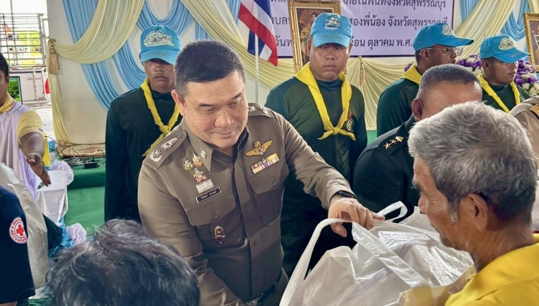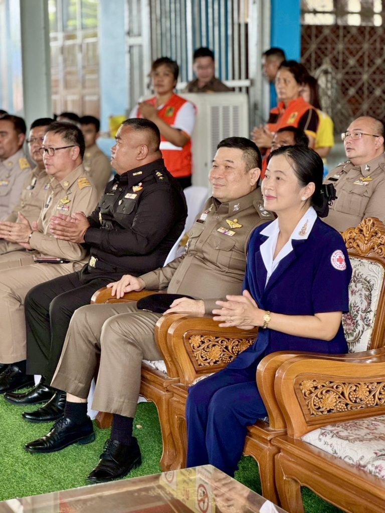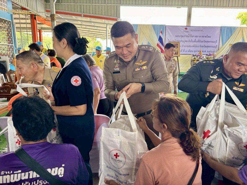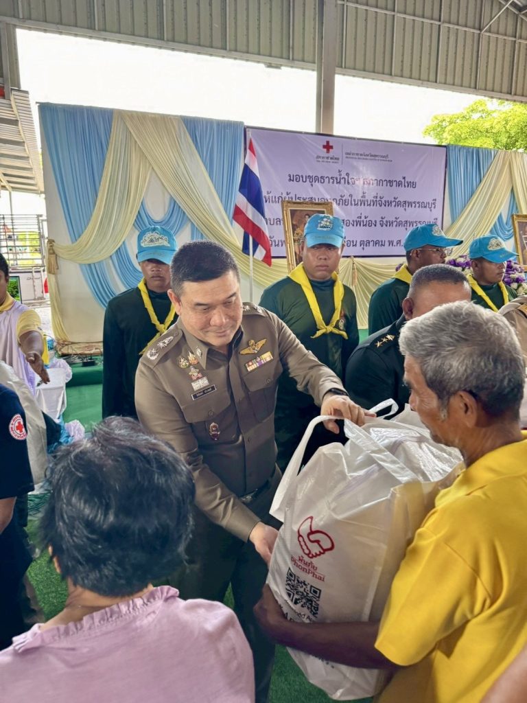 วันที่ 9 ต.ค.68 เวลา 13.30 น. พล.ต.ต.วัชรินทร์ ประสพดี ผบก.ภ.จว.สุพรรณบุรี พร้อมด้วย พ.ต.อ.ปริญญา เกาชวัต ผกก.สภ.บางตาเถร เข้าร่วมพิธีมอบชุดธารน้ำใจ สภากาชาดไทย เพื่อผู้ประสบอุทกภัย แก่ประชาชนผู้ได้รับความเดือดร้อนจากอุทกภัยในพื้นที่จังหวัดสุพรรณบุรี โดยมี พลโทนายแพทย์ อำนาจ บาลี ผู้อำนวยการสำนักงานบรรเทาทุกข์ สภากาชาดไทย เป็นประธานในพิธี และมีนายพิริยะ ฉันทดิลก ผู้ว่าราชการจังหวัดสุพรรณบุรี เข้าร่วม ณ วัดรางบัวทอง ต.บ้านกุ่ม อ.สองพี่น้อง จ.สุพรรณบุรี