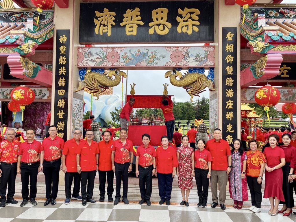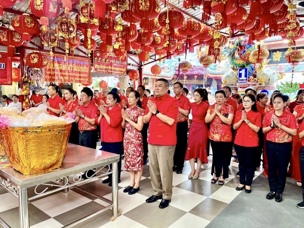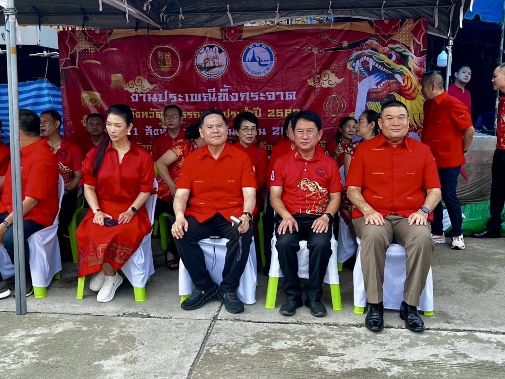 วันที่ 21 ส.ค.67 เวลา 07.00 น. พล.ต.ต.วัชรินทร์ ประสพดี ผบก.ภ.จว.สุพรรณบุรี ร่วมพิธีเปิดงานประเพณีทิ้งกระจาดจังหวัดสุพรรณบุรี ประจำปี 2567 และร่วมหามเกี้ยวขบวนแห่เจ้าพ่อหลักเมืองสุพรรณบุรี โดยมี นายวราวุธ ศิลปอาชา รัฐมนตรีว่าการกระทรวงการพัฒนาสังคมและความมั่นคงของมนุษย์ เป็นประธาน พร้อมด้วย นายณัฐภัทร สุวรรณประทีป ผู้ว่าราชการจังหวัดสุพรรณบุรี หัวหน้าส่วนราชการ และหน่วยงานที่เกี่ยวข้องเข้าร่วม ณ อุทยานมังกรสวรรค์ พิพิธภัณฑ์ลูกหลานพันธุ์มังกร ศาลเจ้าพ่อหลักเมืองสุพรรณบุรี อ.เมือง จ.สุพรรณบุรี