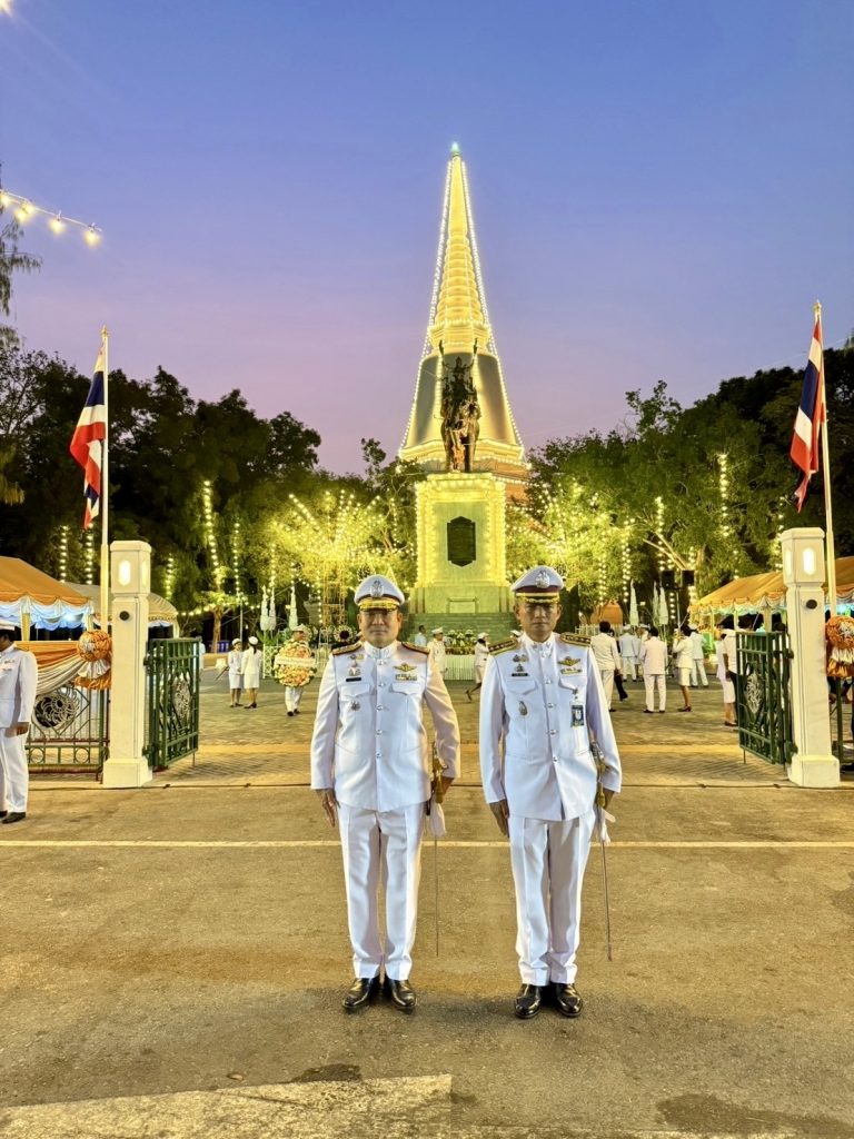วันที่ 25 เม.ย.67 เวลา 06.00 น. พล.ต.ต.วัชรินทร์ ประสพดี ผบก.ภ.จว.สุพรรณบุรี พร้อมด้วย พ.ต.อ.เอกชัย ศรีเมือง ผกก.สภ.ดอนเจดีย์ เข้าร่วมพิธีบวงสรวงดวงพระวิญญาณสมเด็จพระนเรศวรมหาราช จากนั้นเวลา 07.30 น. ได้รับมอบหมายให้เป็นผู้แทนสำนักงานตำรวจแห่งชาติ วางพวงมาลาถวายราชสักการะ สมเด็จพระนเรศวรมหาราช และเวลา 10.00 น. ร่วมรัฐพิธีถวายราชสักการะ สมเด็จพระนเรศวรมหาราช โดยพลเอกไพบูลย์ คุ้มฉายา องคมนตรี เป็นผู้แทนพระองค์ วางพวงมาลาของพระบาทสมเด็จพระเจ้าอยู่หัวฯ ณ พระบรมราชานุสรณ์ดอนเจดีย์ อ.ดอนเจดีย์ จ.สุพรรณบุรี