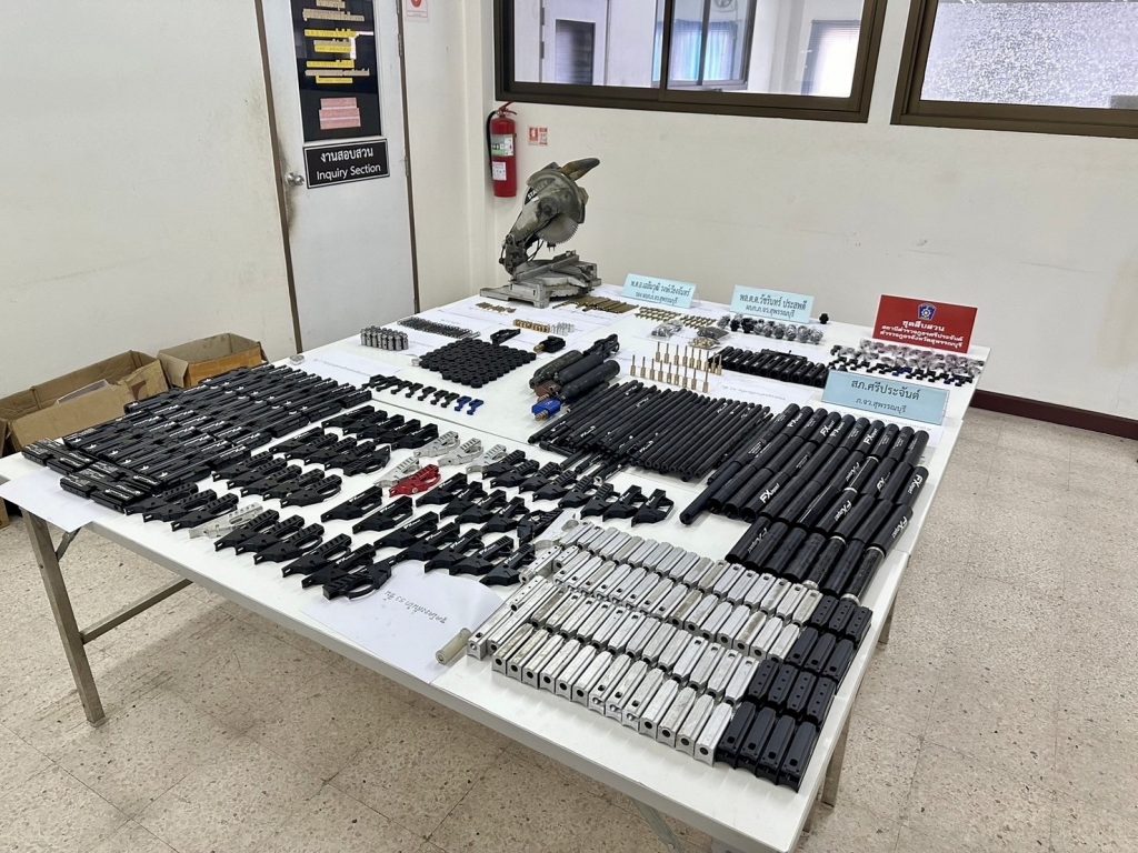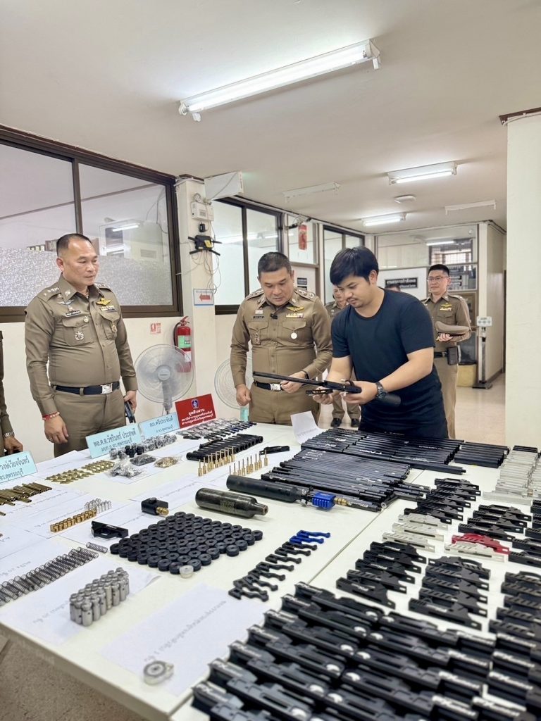 วันที่ 24 เม.ย.67 เวลา 13.45 น. พล.ต.ต.วัชรินทร์ ประสพดี ผบก.ภ.จว.สุพรรณบุรี พร้อมด้วย พ.ต.อ.เฉลิมวุฒิ วงษ์เวียงจันทร์ รอง ผบก.ภ.จว.สุพรรณบุรี และ พ.ต.อ.วรภพ จำปาเงิน ผกก.สภ.ศรีประจันต์ ร่วมแถลงผลการจับกุมผู้ต้องหาคดี “ทำอาวุธปืนโดยไม่ได้รับอนุญาตจากนายทะเบียนท้องที่” จำนวน 1 ราย 1 คน พร้อมชิ้นส่วนอาวุธปืน ของกลาง จำนวน 549 ชิ้น ซึ่งหากนำมาประกอบรวมกัน จะเป็นอาวุธปืนยาวอัดลมไทยประดิษฐ์ ได้จำนวนประมาณ 30 กระบอก ซึ่งอาวุธปืนดังกล่าว หากยิงถูกจุดสำคัญ สามารถทำอันตรายถึงชีวิตได้ ทั้งนี้ สืบเนื่องมาจากข้อมูลการสืบสวนของตำรวจกองบัญชาการสืบสวนสอบสวนอาชญากรรมทางเทคโนโลยี ว่ามีการจำหน่ายอาวุธปืนไทยประดิษฐ์ผ่านช่องทางออนไลน์ เจ้าหน้าที่ตำรวจ กองกำกับการสืบสวน ภ.จว.สุพรรณบุรี จึงร่วมกับฝ่ายสืบสวน สภ.ศรีประจันต์ ได้นำหมายค้นศาลจังหวัดสุพรรณบุรี เข้าทำการตรวจค้นบ้านพักของผู้ต้องหา พบ ผู้ต้องหาพร้อมของกลางดังกล่าว จึงนำส่งดำเนินคดีตามกฎหมาย ณ สภ.ศรีประจันต์ อ.ศรีประจันต์ จ.สุพรรณบุรี