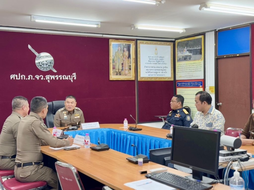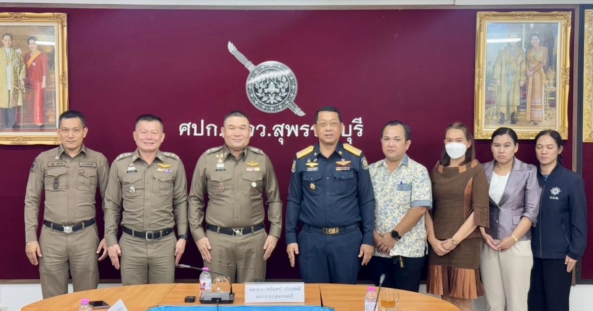 วันที่ 21 ก.พ.68 เวลา 13.30 น. พล.ต.ต.วัชรินทร์ ประสพดี ผบก.ภ.จว.สุพรรณบุรี พร้อมด้วย พ.ต.อ.ยิ่งยส เขินอำนวย รอง ผบก.ภ.จว.สุพรรณบุรี และ พ.ต.อ.เจษฎา พานิชวงศ์ ผกก.(สอบสวน)ฯ ภ.จว.สุพรรณบุรี ร่วมให้การต้อนรับ นายไกรเลิศ ดาวเรือง ผู้อำนวยการสำนักงานป้องกันและปราบปรามยาเสพติด ภาค 7 พร้อมคณะ เดินทางมาเข้าพบ เพื่อแนะนำตัว เนื่องในโอกาสย้ายมารับตำแหน่งใหม่ โดยได้หารือข้อราชการ นโยบายเกี่ยวกับงานยาเสพติดในพื้นที่ จ.สุพรรณบุรี ณ ห้องประชุม ศปก.ภ.จว.สุพรรณบุรี อ.เมือง จ.สุพรรณบุรี