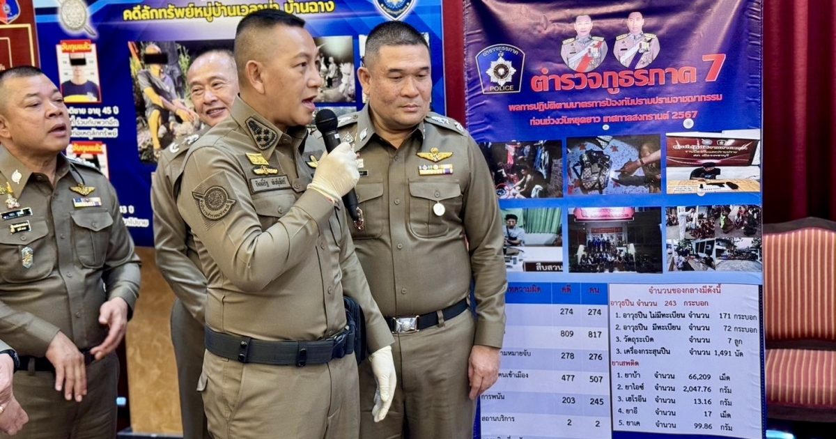 วันที่ 11 เม.ย.67 เวลา 10.00 น. พล.ต.ต.วัชรินทร์ ประสพดี ผบก.ภ.จว.สุพรรณบุรี พร้อมด้วย พ.ต.อ.ปริญญา เกาชวัต ผกก.สภ.บางตาเถร , ฝ่ายสืบสวน สภ.บางตาเถร และ จนท.ฝอ.3 ภ.จว.สุพรรณบุรี เข้าร่วมการแถลงผลการปฏิบัติการระดมกวาดล้างอาชญากรรมก่อนช่วงวันหยุดยาวเทศกาลสงกรานต์ 2567 โดยมี พล.ต.อ.กิตติ์รัฐ พันธุ์เพ็ชร์ รอง ผบ.ตร.รรท.ผบ.ตร. เป็นประธาน และในส่วน ภ.7 มี พล.ต.ต.สำเริง สวนทอง รอง ผบช.ภ.7 เป็นผู้แทนเข้าร่วม ณ ห้องแจ้งยอดสุข ชั้น 3 อาคารศูนย์ฝึกอบรมพัฒนาบุคลากรและสวัสดิการ ตร. เขตปทุมวัน กรุงเทพฯ