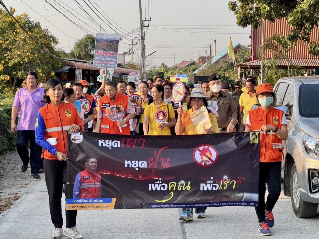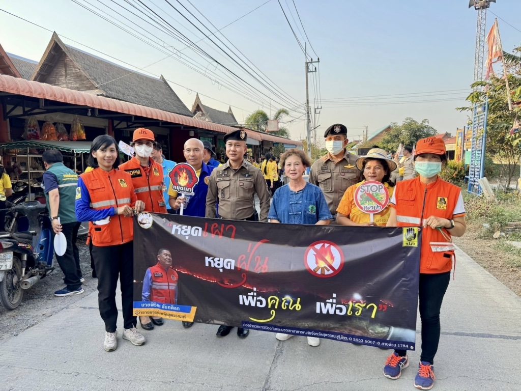 วันที่ (3 ก.พ.68) เวลา 17.00 น. พล.ต.ต.วัชรินทร์ ประสพดี ผบก.ภ.จว.สุพรรณบุรี พร้อมด้วย พ.ต.อ.มงคล วิลัยเกษม ผกก.สภ.บางปลาม้า , ข้าราชการตำรวจ สภ.บางปลาม้า และหัวหน้าส่วนราชการที่เกี่ยวข้อง เข้าร่วมกิจกรรมการรณรงค์แก้ไขปัญหาไฟป่า หมอกควัน และฝุ่นละอองขนาดเล็ก (PM 2.5) โดยร่วมขบวนเดินรณรงค์เคาะประตูบ้าน “หยุดเผา หยุดฝุ่น เพื่อคุณ เพื่อเรา” โดยมี นายพิริยะ ฉันทดิลก ผู้ว่าราชการจังหวัดสุพรรณบุรี เป็นประธาน ณ วัดโพธิ์ศรี ต.บางปลาม้า อ.บางปลาม้า จ.สุพรรณบุรี