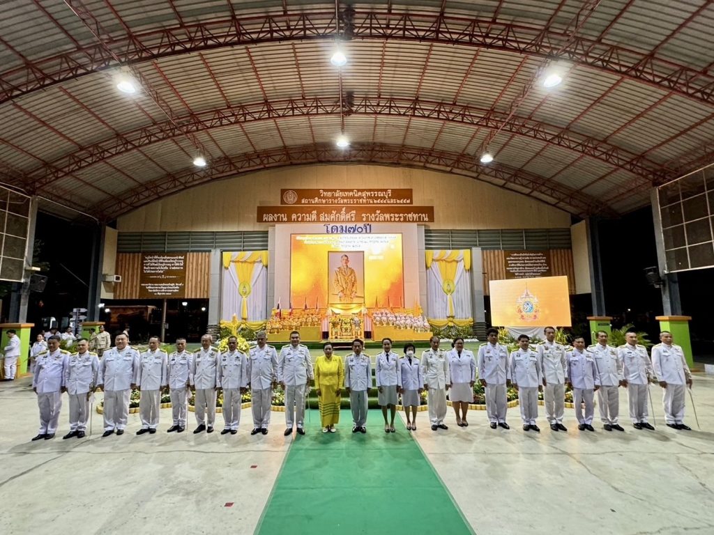 วันที่ 28 ก.ค.67 เวลา 19.00 น. พล.ต.ต.วัชรินทร์ ประสพดี ผบก.ภ.จว.สุพรรณบุรี พร้อมด้วย ข้าราชการตำรวจ ภ.จว.สุพรรณบุรี และ สภ.เมืองสุพรรณบุรี เข้าร่วมกิจกรรมเฉลิมพระเกียรติ พระบาทสมเด็จพระเจ้าอยู่หัว เนื่องในโอกาสพระราชพิธีมหามงคลเฉลิมพระชนมพรรษา 6 รอบ 28 กรกฎาคม 2567 พิธีถวายเครื่องราชสักการะและวางพานพุ่ม และพิธีจุดเทียนถวายพระพรชัยมงคล โดยมี นายณัฐภัทร สุวรรณประทีป ผู้ว่าราชการจังหวัดสุพรรณบุรี เป็นประธาน ณ อาคารโดม 70 ปี วิทยาลัยเทคนิคสุพรรณบุรี อ.เมือง จ.สุพรรณบุรี