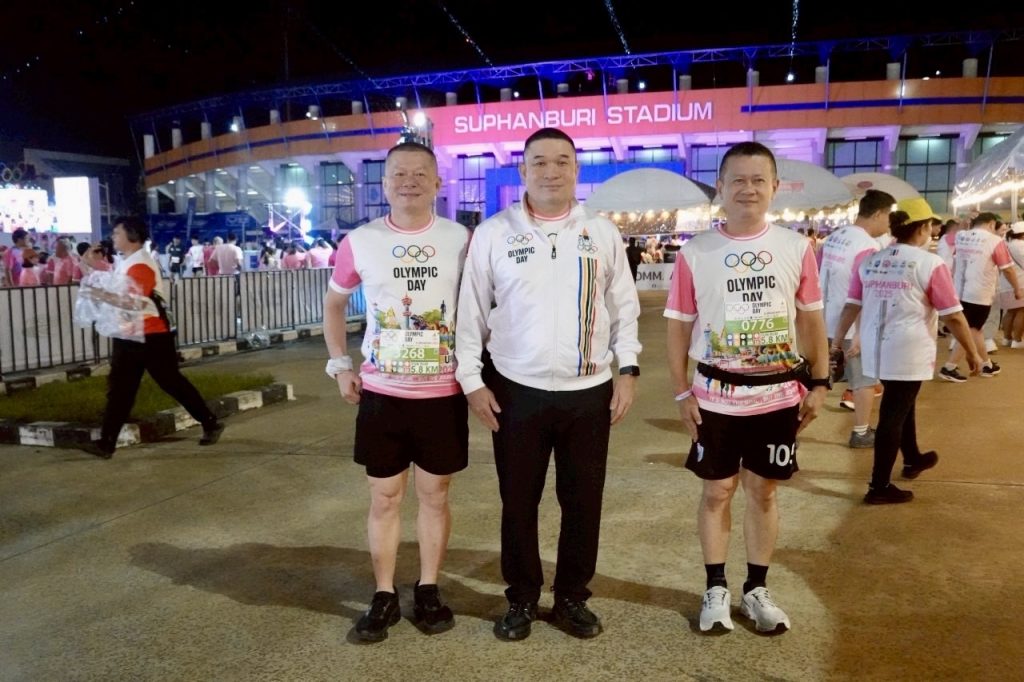 วันที่ 14 มิ.ย.68) เวลา 04.00 น. พล.ต.ต.วัชรินทร์ ประสพดี ผบก.ภ.จว.สุพรรณบุรี พร้อมด้วย พ.ต.อ.ยิ่งยส เขินอำนวย , พ.ต.อ.กฤศ จันทร์สว่าง รอง ผบก.ภ.จว.สุพรรณบุรี และ พ.ต.อ.วันชัย ขาวรัมย์ ผกก.สภ.เมืองสุพรรณบุรี เข้าร่วมกิจกรรมเดิน-วิ่ง Olympic Day Suphanburi 2025 โดยมี นายวราวุธ ศิลปอาชา รัฐมนตรีว่าการกระทรวงการพัฒนาสังคมและความมั่นคงของมนุษย์ , นายสรวงศ์ เทียนทอง รัฐมนตรีว่าการกระทรวงท่องเที่ยวและกีฬา , นายพิมล ศรีวิกรณ์ ประธานโอลิมปิกแห่งประเทศไทย ในพระบรมราชูปถัมภ์ และนายพิริยะ ฉันทดิลก ผู้ว่าราชการจังหวัดสุพรรณบุรี ร่วมเป็นประธาน ณ สนามกีฬากลางจังหวัดสุพรรณบุรี อ.เมือง จ.สุพรรณบุรี