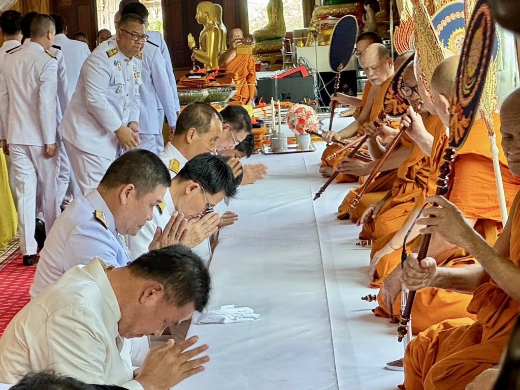 วันที่ 11 ก.ค.67 เวลา 14.00 น. พล.ต.ต.วัชรินทร์ ประสพดี ผบก.ภ.จว.สุพรรณบุรี พร้อมด้วย พ.ต.อ.ธนกร รอดเรือง ผกก.สภ.สระแก้ว และ ข้าราชการตำรวจ สภ.สระแก้ว เข้าร่วมพิธีบำเพ็ญพระกุศลถวายพระราชกุศลแด่ พระบาทสมเด็จพระจอมเกล้าเจ้าอยู่หัว พระสยามเทวมหามกุฏวิทยมหาราช เนื่องในอภิลักขิตสมัย 200 ปี นับแต่ทรงผนวช ในพระบรมราชูปถัมภ์ จังหวัดสุพรรณบุรี โดยมี นายณัฐภัทร สุวรรณประทีป ผู้ว่าราชการจังหวัดสุพรรณบุรี เป็นประธานฝ่ายฆราวาส ณ ศาลาการเปรียญ วัดหลักเมตร ต.สระแก้ว อ.เมือง จ.สุพรรณบุรี