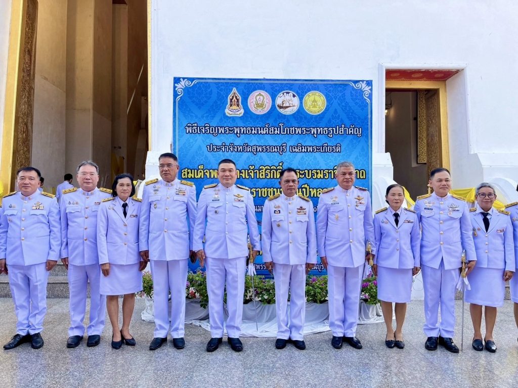 วันที่ 8 ส.ค.67 เวลา 14.00 น. พล.ต.ต.วัชรินทร์ ประสพดี ผบก.ภ.จว.สุพรรณบุรี พร้อมด้วย พ.ต.อ.สมเดช เกษมสุข ผกก.(สอบสวน) ภ.จว.สุพรรณบุรี , ข้าราชการตำรวจ ภ.จว.สุพรรณบุรี และ สภ.เมืองสุพรรณบุรี เข้าร่วมพิธีเจริญพระพุทธมนต์สมโภชพระพุทธรูปสำคัญ ประจำจังหวัดสุพรรณบุรี เฉลิมพระเกียรติ สมเด็จพระนางเจ้าสิริกิติ์ พระบรมราชินีนาถ พระบรมราชชนนีพันปีหลวง เนื่องในโอกาสวันเฉลิมพระชนมพรรษา 92 พรรษา 12 สิงหาคม 2567 โดยมี นายประทีป การมิตรี รองผู้ว่าราชการจังหวัดสุพรรณบุรี เป็นประธาน ณ พระวิหารหลวงพ่อโต วัดป่าเลไลยก์วรวิหาร อ.เมือง จ.สุพรรณบุรี