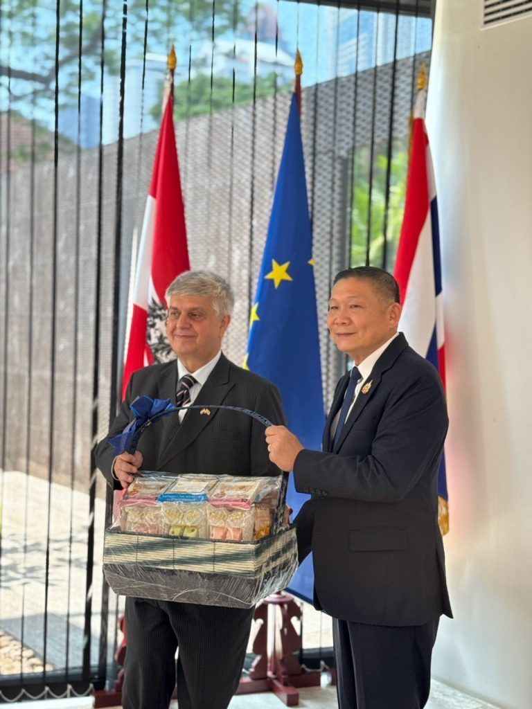 วันที่ (11 มี.ค.68) เวลา 12.00 น. พล.ต.ต.วัชรินทร์ ประสพดี ผบก.ภ.จว.สุพรรณบุรี เข้าร่วมรับประทานอาหารกลางวัน จัดโดยนายวิลเฮ็ล์ม มัคซีมีลีอาน ด็องโค เอกอัครราชทูตออสเตรีย ประจำประเทศไทย เนื่องในโอกาสขอบคุณในการต้อนรับคณะทูตเดินทางไปเยี่ยมชมและปรับปรุงภูมิทัศน์บริเวณจุดเครื่องบินตก และศาลเลาด้าแอร์ ในเขตอุทยานแห่งชาติพุเตย อ.ด่านช้าง และสุสานเลาด้าแอร์ อ.เมือง จ.สุพรรณบุรี โดยมี นายพิริยะ ฉันทดิลก ผู้ว่าราชการจังหวัดสุพรรณบุรี พร้อมคณะส่วนที่เกี่ยวข้องเข้าร่วม ณ สถานเอกอัครราชทูตออสเตรีย ประจำประเทศไทย เขตสาทร กรุงเทพมหานคร