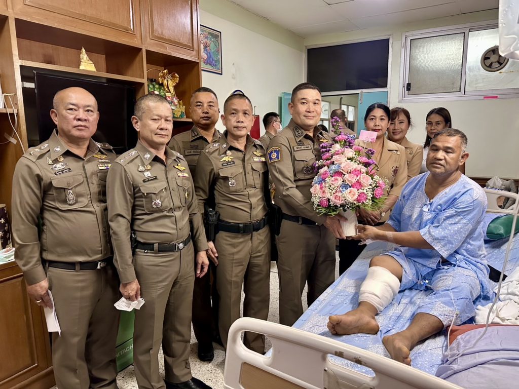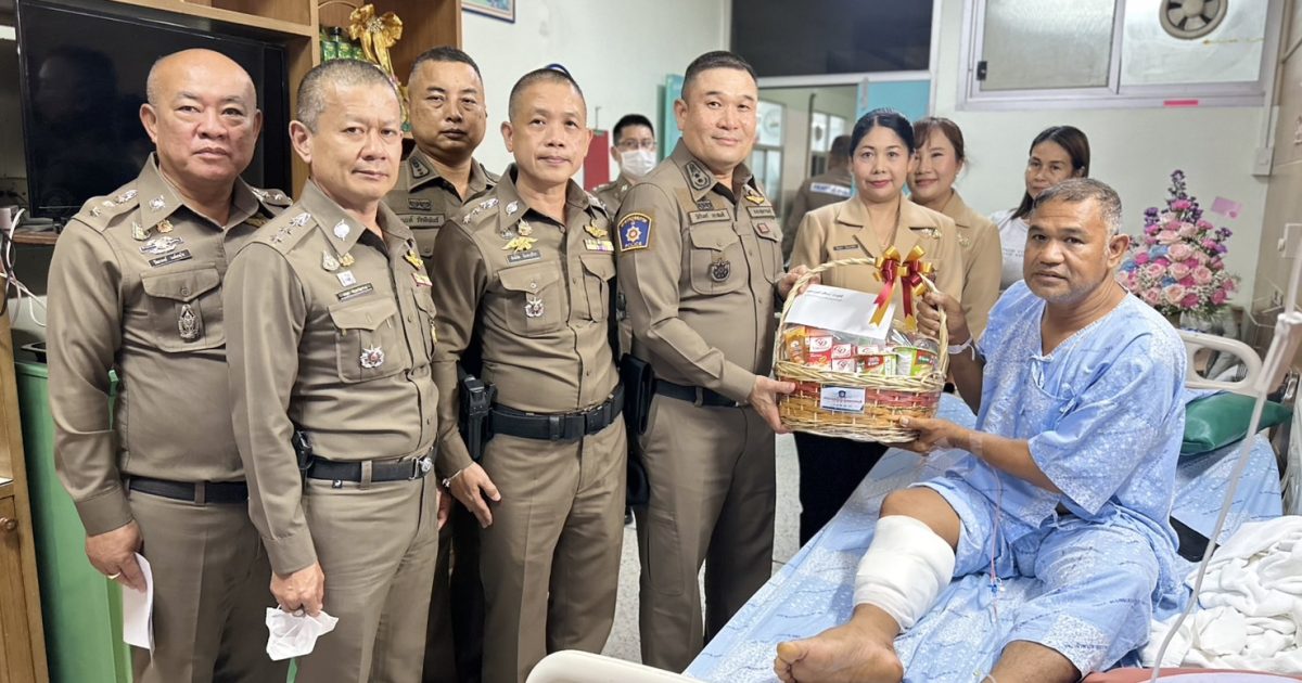 วันที่ (26 พ.ค.68) เวลา 14.30 - 16.00 น. พล.ต.ต.วัชรินทร์ ประสพดี ผบก.ภ.จว.สุพรรณบุรี พร้อมด้วย พ.ต.อ.ศักดิ์ชัย อินทรปรีชา , พ.ต.อ.กฤศ จันทร์สว่าง , พ.ต.อ.นนท์ ภักดีพันธ์ รอง ผบก.ภ.จว.สุพรรณบุรี , พ.ต.อ.ปิยะพงษ์ วงค์เกตุใจ ผกก.สภ.สามชุก , คุณจินตนา อินทรปรีชา รักษาการประธานแม่บ้านตำรวจ ภ.จว.สุพรรณบุรี และคุณสมิตานัน อินสุข สมาชิกแม่บ้านตำรวจ ภ.จว.สุพรรณบุรี เดินทางมาเยี่ยมและให้กำลังใจ ร.ต.ต.อาทิตย์ สมบูรณ์กฤษ รอง สว.(ป) สภ.สามชุก ซึ่งได้รับบาดเจ็บถูกอาวุธปืนยิงบริเวณขาขวา และ ร.ต.ท.สมพร รถมณี รอง สว.(ป) สภ.สามชุก ซึ่งได้รับบาดเจ็บถูกอาวุธปืนยิงบริเวณหลัง จากเหตุชายคลุ้มคลั่งอาระวาดใช้อาวุธปืนข่มขู่ประชาชน และยิงต่อสู้ขัดขวางเจ้าพนักงาน จนถูกวิสามัญฆาตกรรม เหตุเกิดเมื่อวันที่ 24 พ.ค.68 เวลา 12.00 น. บริเวณริมถนน 340 ต.ย่านยาว อ.สามชุก จ.สุพรรณบุรี โดยได้มอบกระเช้าสิ่งของ และเงินส่วนตัวช่วยเหลือเบื้องต้น รายละ 5,000 บาท พร้อมแจ้งสิทธิในการขอรับสวัสดิการต่างๆ ที่เกี่ยวข้อง ณ โรงพยาบาลเจ้าพระยายมราช อ.เมือง จ.สุพรรณบุรี และบ้านพัก ต.ย่านยาว อ.สามชุก จ.สุพรรณบุรี