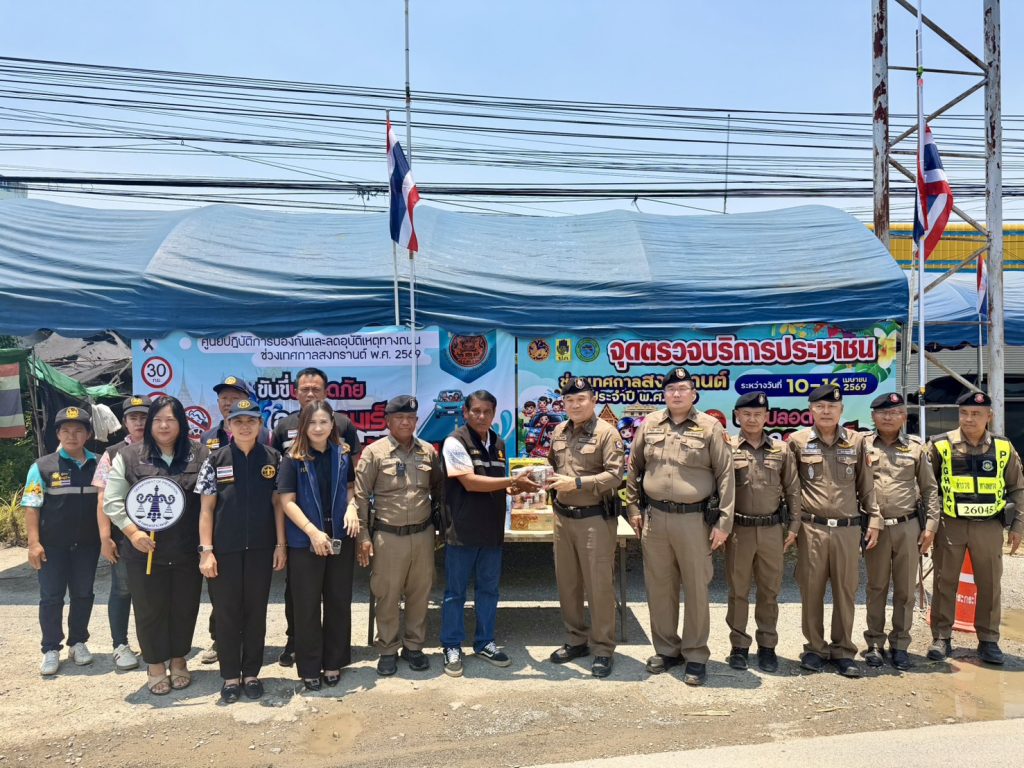 วันที่ 10 เม.ย.69 ระหว่างเวลา 11.00 - 12.30 น. พล.ต.ต.วัชรินทร์ ประสพดี ผบก.ภ.จว.สุพรรณบุรี พร้อมด้วย ตำรวจ ส.ทล.6 กก.2 บก.ทล. ร่วมกับ ผู้อำนวยการสำนักงานคุมประพฤติจังหวัดสุพรรณบุรี และผู้อำนวยการสำนักงาน คปภ.จังหวัดสุพรรณบุรี ได้เดินทางไปตรวจเยี่ยมจุดตรวจ/จุดบริการประชาชน ช่วงเทศกาลสงกรานต์ 2569 ในเขตพื้นที่อำเภอศรีประจันต์ และอำเภอดอนเจดีย์ จังหวัดสุพรรณบุรี จำนวน 3 แห่ง พบ พ.ต.อ.เอกชัย ศรีเมือง ผกก.สภ.ศรีประจันต์ , พ.ต.อ.ปริญญา เกาชวัต ผกก.สภ.ดอนเจดีย์ พร้อมข้าราชการตำรวจ , ฝ่ายปกครอง , สาธารณสุข , อาสาสมัคร และจิตอาสา อยู่ปฏิบัติหน้าที่ จึงได้มอบสิ่งของ เพื่อเป็นขวัญกำลังใจในการปฏิบัติหน้าที่ พร้อมได้กำชับให้ดูแลอำนวยความสะดวกด้านการจราจรและการให้บริการประชาชน