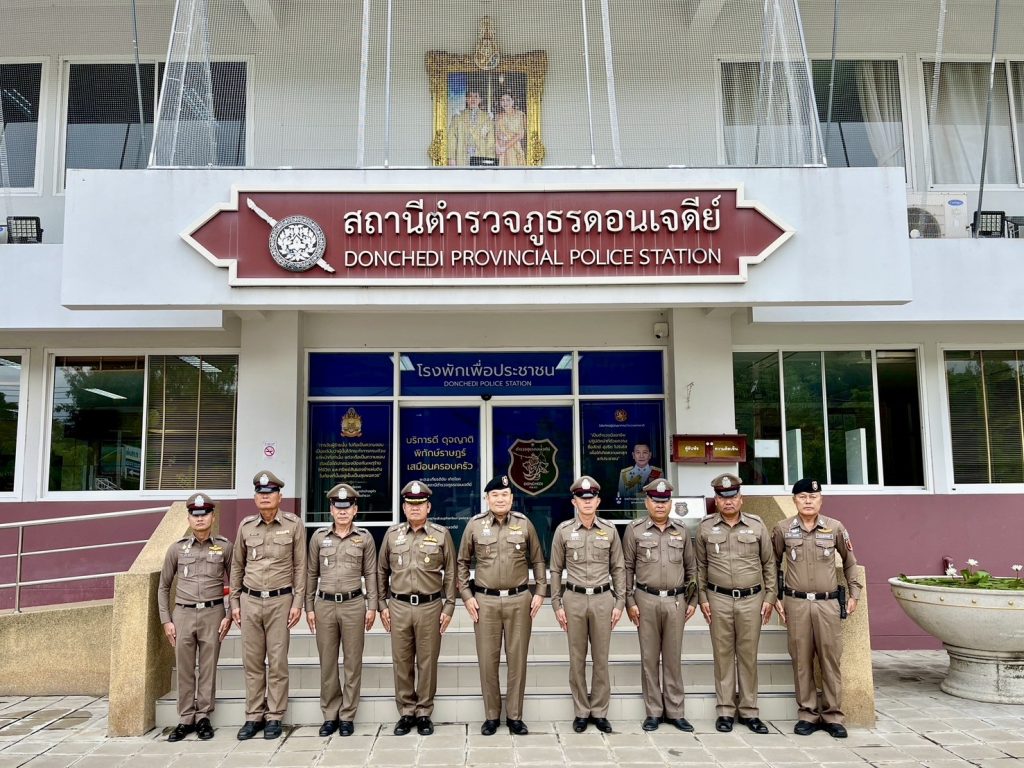 วันที่ (22 ก.ค.68) เวลา 11.30 น. พล.ต.ต.วัชรินทร์ ประสพดี ผบก.ภ.จว.สุพรรณบุรี เดินทางไปตรวจเยี่ยม สภ.ด่านช้าง พบ พ.ต.อ.ทัตเทพ เลิศลักษณ์มีพันธ์ ผกก.สภ.ด่านช้าง พร้อมข้าราชการตำรวจ สภ.ด่านช้าง อยู่ปฏิบัติหน้าที่ โดยได้เยี่ยมชมห้อง one stop service และได้ประชุมรับฟังปัญหาข้อขัดข้องของหน่วย พร้อมกำชับแนวทางการปฏิบัติหน้าที่ โดยได้เน้นย้ำนโยบายรัฐบาลเกี่ยวกับการแก้ไขปัญหายาเสพติด จากนั้นได้ร่วมรับประทานอาหารโครงการสวัสดิการอาหารกลางวันของหน่วย ต่อมา เวลา 13.45 น. เดินทางไปตรวจเยี่ยม สภ.ดอนเจดีย์ พบ พ.ต.อ.เกียรติชัย เกิดโชค ผกก.สภ.ดอนเจดีย์ พร้อมข้าราชการตำรวจ สภ.ดอนเจดีย์ อยู่ปฏิบัติหน้าที่ โดยได้เยี่ยมชมห้อง one stop service และได้ประชุมรับฟังปัญหาข้อขัดข้องของหน่วย พร้อมกำชับแนวทางการปฏิบัติหน้าที่ โดยได้เน้นย้ำนโยบายรัฐบาลเกี่ยวกับการแก้ไขปัญหายาเสพติด