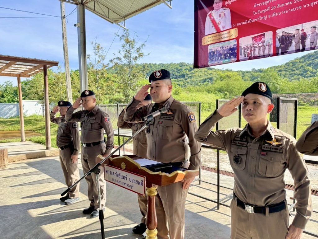 วันที่ 20 ส.ค.68 เวลา 08.45 น. พล.ต.ต.วัชรินทร์ ประสพดี ผบก.ภ.จว.สุพรรณบุรี เป็นประธาน เปิดการฝึกอบรม (ครู ค.) สำหรับโครงการฝึกทักษะยิงปืนให้แก่ข้าราชการตำรวจผู้ปฏิบัติหน้าที่งานป้องกันปราบปราม สืบสวน และจราจร ในสถานีตำรวจ ตำรวจภูธรจังหวัดสุพรรณบุรี พร้อมด้วย พ.ต.อ.ศักดิ์ชัย อินทรปรีชา รอง ผบก.ภ.จว.สุพรรณบุรี และ หน.สภ.ในสังกัด ภ.จว.สุพรรณบุรี เข้าร่วมพิธีเปิด โดยมีผู้เข้ารับการฝึกอบรมฯ เป็นข้าราชการตำรวจ ทุก สภ.ในสังกัด และ กก.สืบสวน ภ.จว.สุพรรณบุรี รวมจำนวน 34 นาย ณ สนามยิงปืนเขาใหญ่ อ.เดิมบางนางบวช จ.สุพรรณบุรี