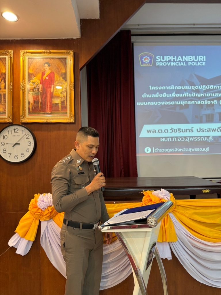 วันที่ (4 มี.ค.68) เวลา 09.00 น. พล.ต.ต.วัชรินทร์ ประสพดี ผบก.ภ.จว.สุพรรณบุรี เป็นประธาน เปิดโครงการฝึกอบรมชุดปฏิบัติการตำบลยั่งยืน เพื่อแก้ไขปัญหายาเสพติดแบบครบวงจรตามยุทธศาสตร์ชาติ (ครู ข) โดยมี พ.ต.อ.ยิ่งยส เขินอำนวย รอง ผบก.ภ.จว.สุพรรณบุรี , หน.สภ.ฯ ในสังกัด , เจ้าหน้าที่ฝ่ายปกครองอำเภอละ 1 คน , เจ้าหน้าที่สาธารณสุขอำเภอละ 1 คน และ ผู้นำชุมชน สภ.ละ 2 คน รวมจำนวน 88 คน เข้าร่วมการอบรม ณ ห้องประชุม 1 ชั้น 3 ภ.จว.สุพรรณบุรี
