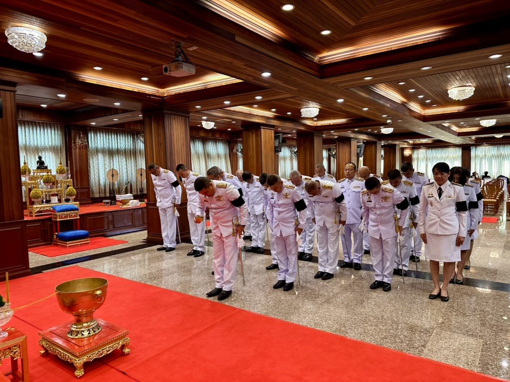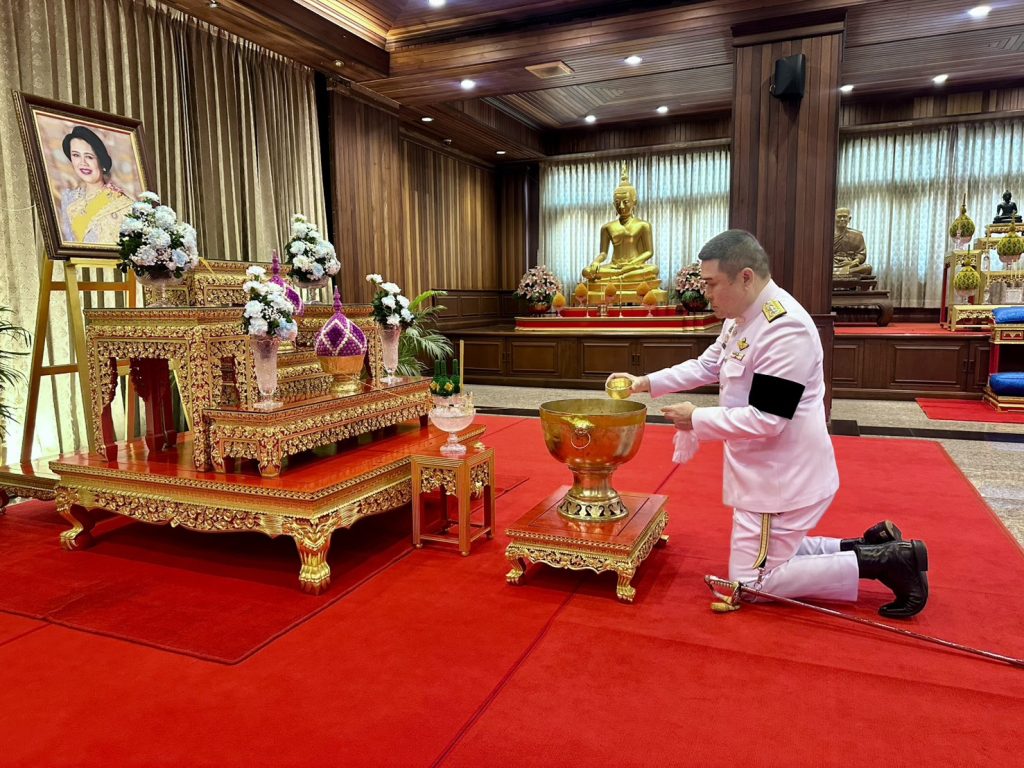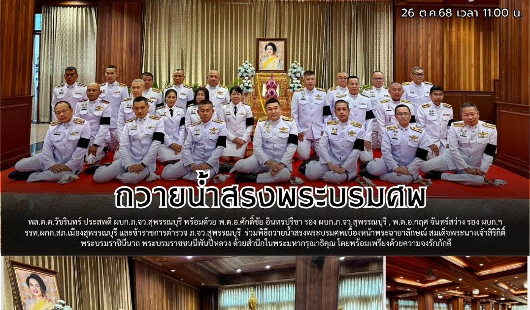 วันที่ 26 ต.ค.68 เวลา 11.00 น. พล.ต.ต.วัชรินทร์ ประสพดี ผบก.ภ.จว.สุพรรณบุรี พร้อมด้วย พ.ต.อ.ศักดิ์ชัย อินทรปรีชา รอง ผบก.ภ.จว.สุพรรณบุรี , พ.ต.อ.กฤศ จันทร์สว่าง รอง ผบก.ฯ รรท.ผกก.สภ.เมืองสุพรรณบุรี และข้าราชการตำรวจ ภ.จว.สุพรรณบุรี และ สภ.เมืองสุพรรณบุรี ร่วมพิธีถวายน้ำสรงพระบรมศพเบื้องหน้าพระฉายาลักษณ์ สมเด็จพระนางเจ้าสิริกิติ์ พระบรมราชินีนาถ พระบรมราชชนนีพันปีหลวง ด้วยสำนึกในพระมหากรุณาธิคุณ โดยพร้อมเพรียงด้วยความจงรักภักดี ณ วัดแค ต.รั้วใหญ่ อ.เมือง จ.สุพรรณบุรี