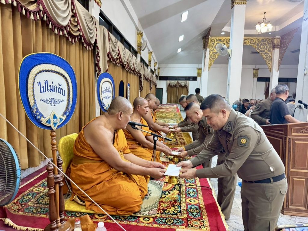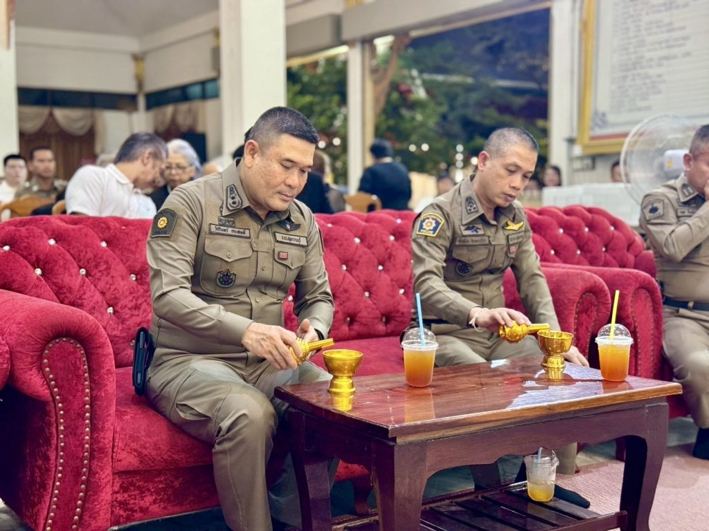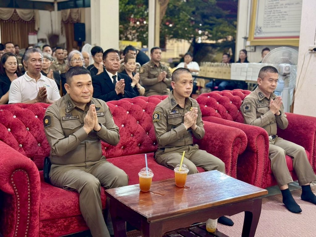 วันที่ 6 พ.ย.68 เวลา 20.00 น. พล.ต.ต.วัชรินทร์ ประสพดี ผบก.ภ.จว.สุพรรณบุรี พร้อมด้วย พ.ต.อ.สมพร พุกหอม , พ.ต.อ.ศักดิ์ชัย อินทรปรีชา , พ.ต.อ.กฤศ จันทร์สว่าง รอง ผบก.ภ.จว.สุพรรณบุรี , พ.ต.อ.พีระ อัศวพิบูลย์ผล ผกก.สืบสวนฯ , พ.ต.อ.ยุทธนา สันติปรีชาวัฒน์ ผกก.ฝอ.ฯ , ข้าราชการตำรวจ กก.สืบสวนฯ และ ฝอ.ภ.จว.สุพรรณบุรี ร่วมฟังสวดพระอภิธรรม ร.ต.อ.ณรงค์ วิศิษฏานนท์ รอง สว. กก.สืบสวน ภ.จว.สุพรรณบุรี และได้มอบเงินช่วยเหลือให้แก่ครอบครัว ณ ศาลาสมภารมี วัดป่าเลไลยก์วรวิหาร อ.เมือง จ.สุพรรณบุรี