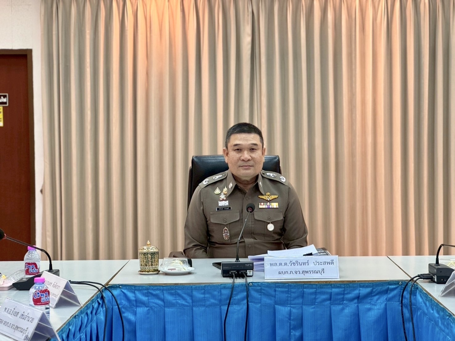 วันที่ (7 พ.ค.68) เวลา 13.30 น. พล.ต.ต.วัชรินทร์ ประสพดี ผบก.ภ.จว.สุพรรณบุรี พร้อมด้วย รอง ผบก.ภ.จว.