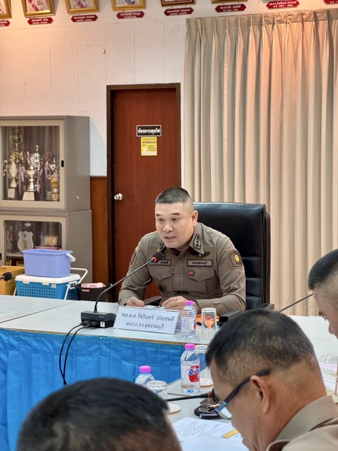 วันที่ (18 ก.พ.68) เวลา 09.30 น. พล.ต.ต.วัชรินทร์ ประสพดี ผบก.ภ.จว.สุพรรณบุรี พร้อมด้วย พ.ต.ท.ตะวัน