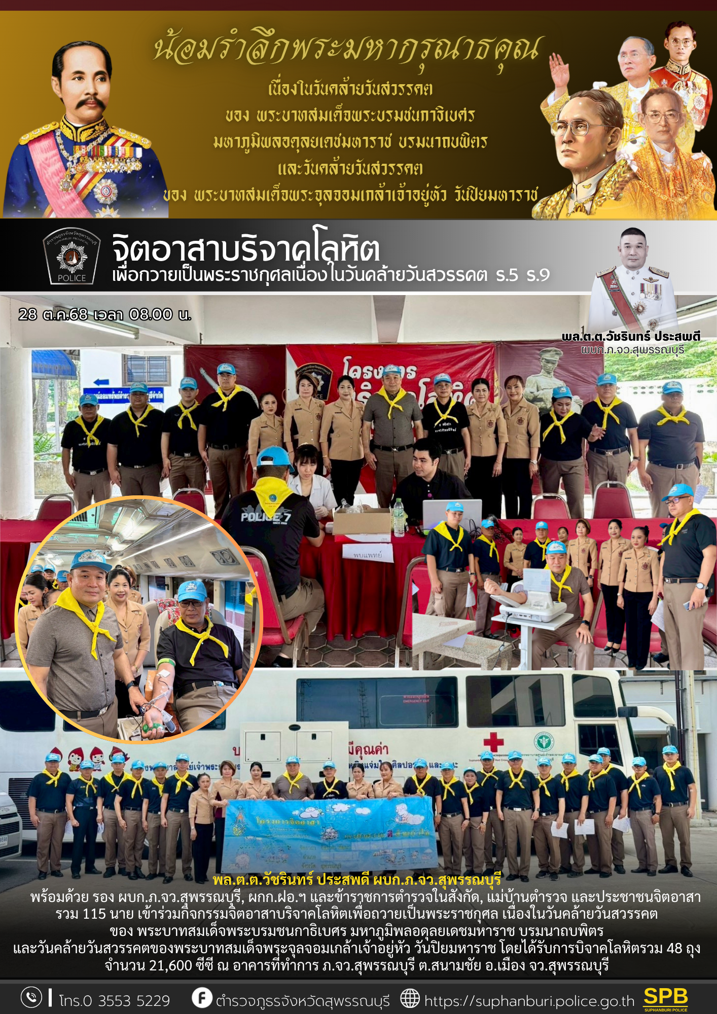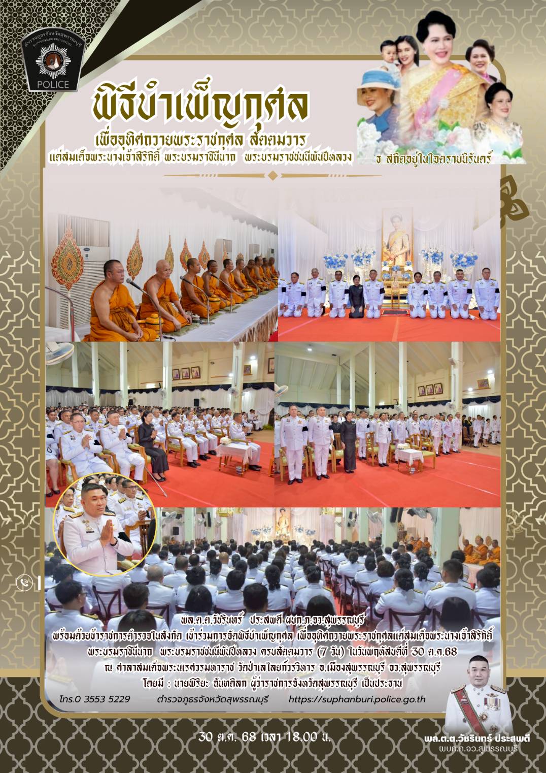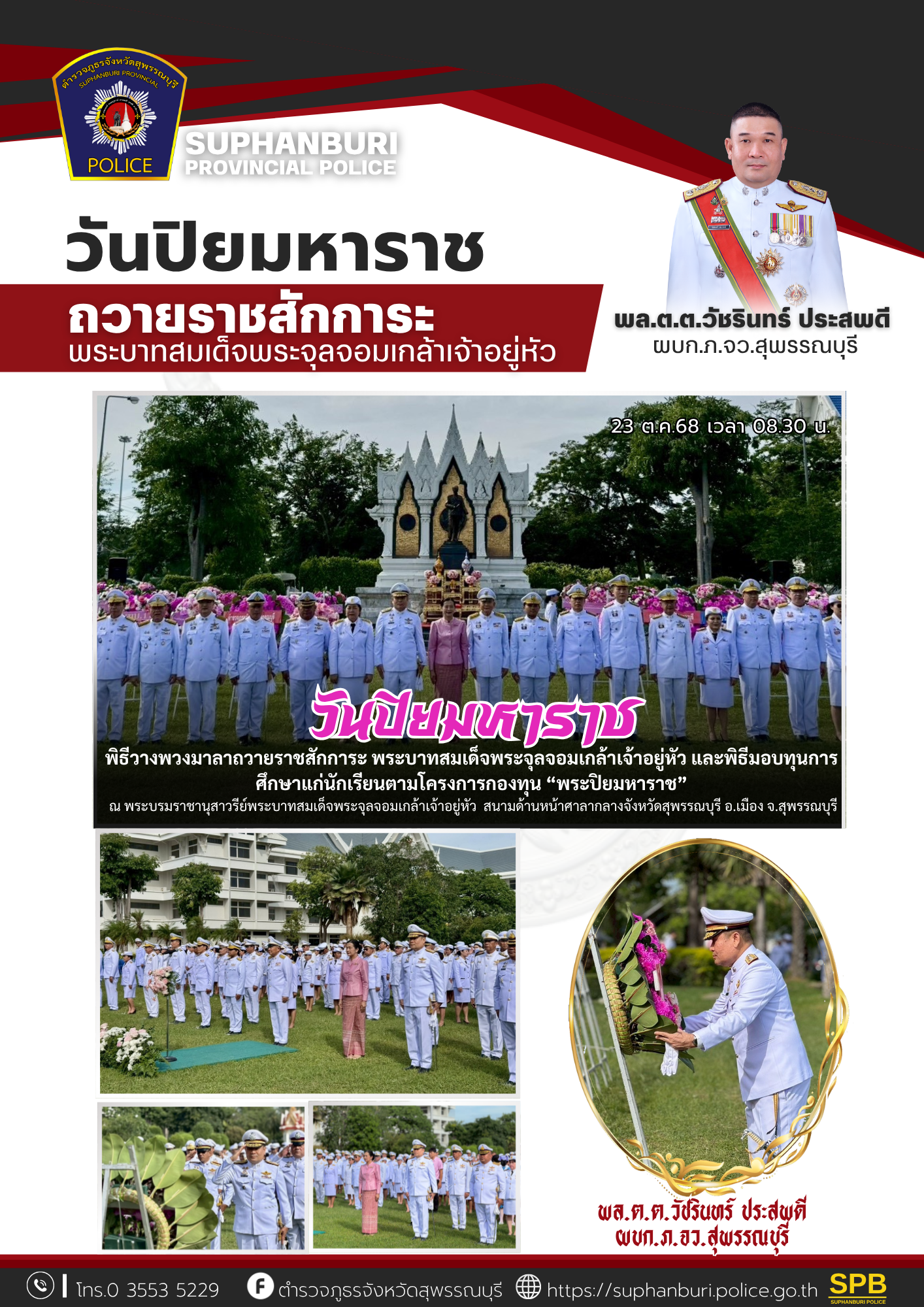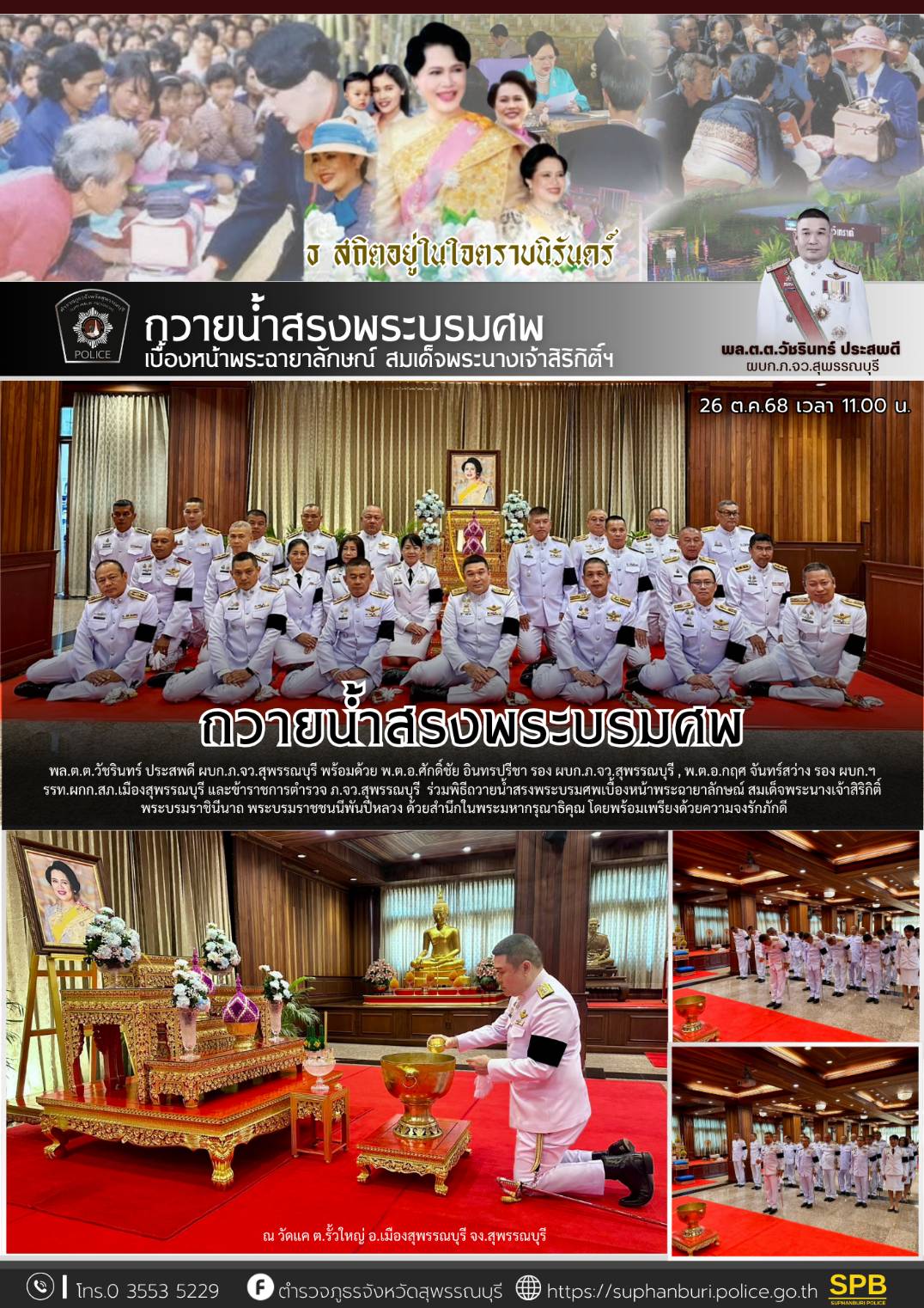 วันที่ 23 ต.ค.68 เวลา 08.30 น. พล.ต.ต.วัชรินทร์ ประสพดี ผบก.ภ.จว.สุพรรณบุรี พร้อมด้วย ข้าราชการตำรวจ