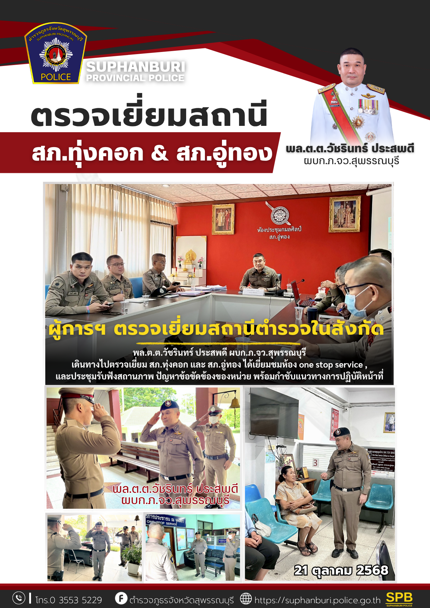 วันที่ 21 ต.ค.68 เวลา 12.00 น. พล.ต.ต.วัชรินทร์ ประสพดี ผบก.ภ.จว.สุพรรณบุรี เดินทางไปตรวจเยี่ยม สภ.ท