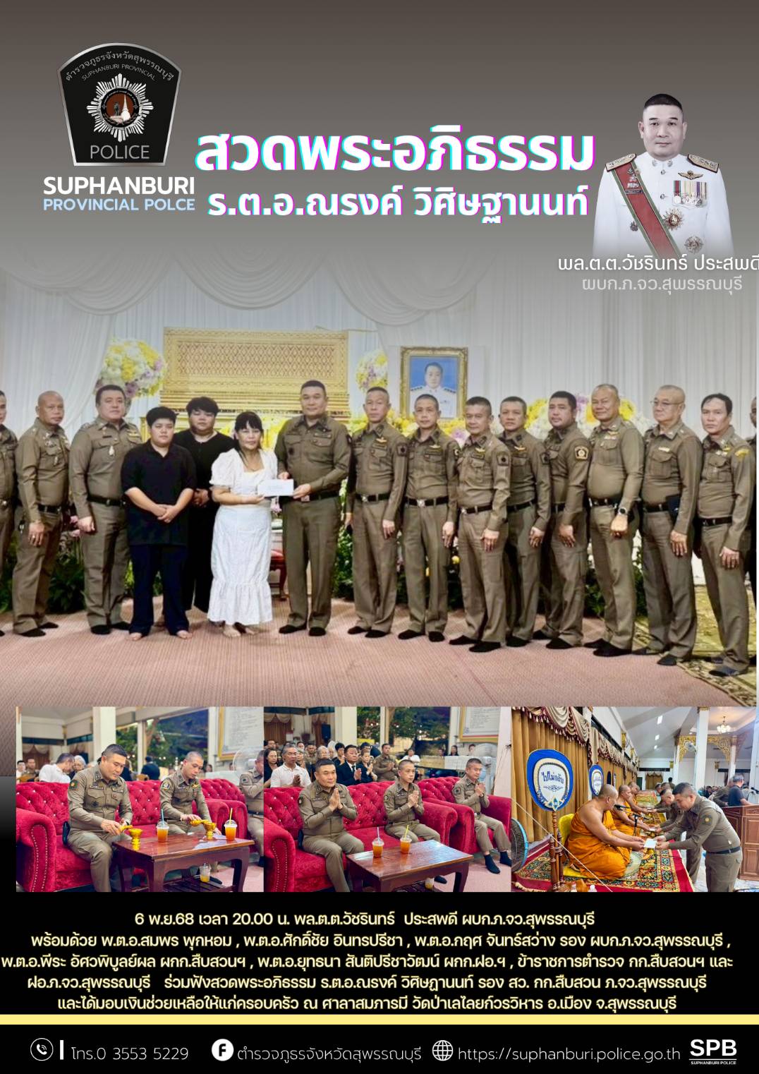 วันที่ 6 พ.ย.68 เวลา 20.00 น. พล.ต.ต.วัชรินทร์ ประสพดี ผบก.ภ.จว.สุพรรณบุรี พร้อมด้วย พ.ต.อ.สมพร พุกห
