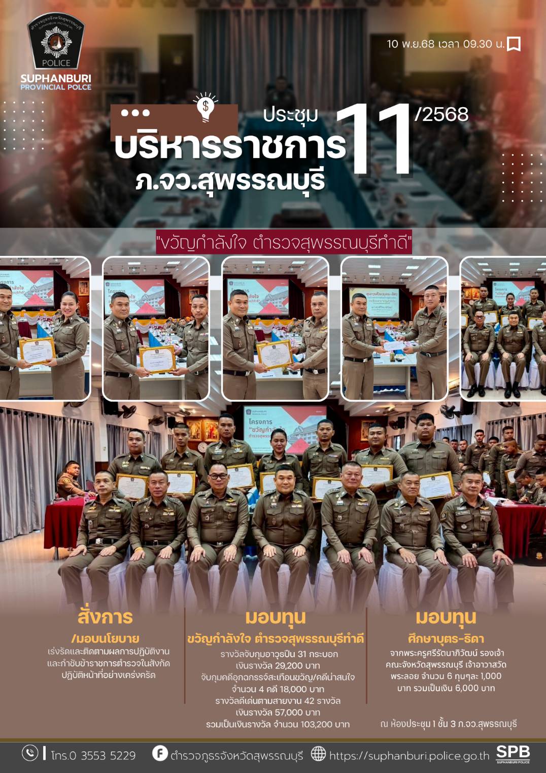 ร่วมประชุมบริหารราชการ ภ.จว.สุพรรณบุรี ครั้งที่ 11/2568 ประจำเดือน พ.ย.68