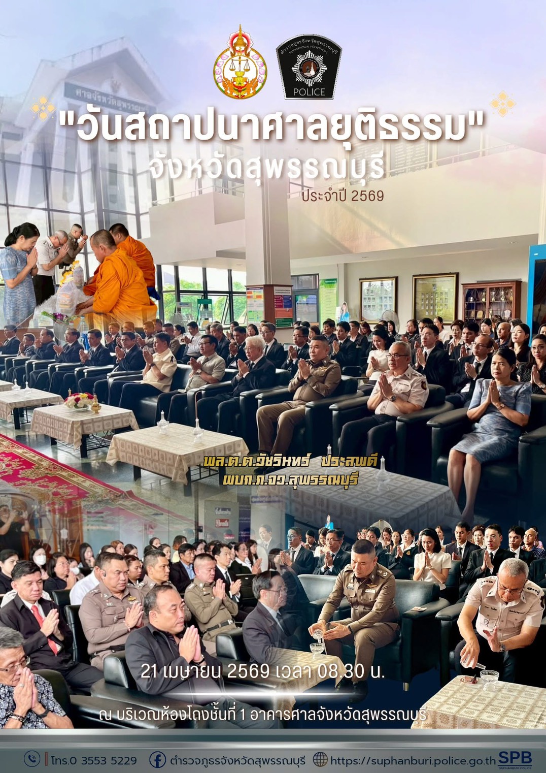 พล.ต.ต.วัชรินทร์ ประสพดี ผบก.ภ.จว.สุพรรณบุรี ว.สุพรรณบุรี เข้าร่วมกิจกรรม “วันสถาปนาศาลยุติธรรม“ ประจำปี 2569